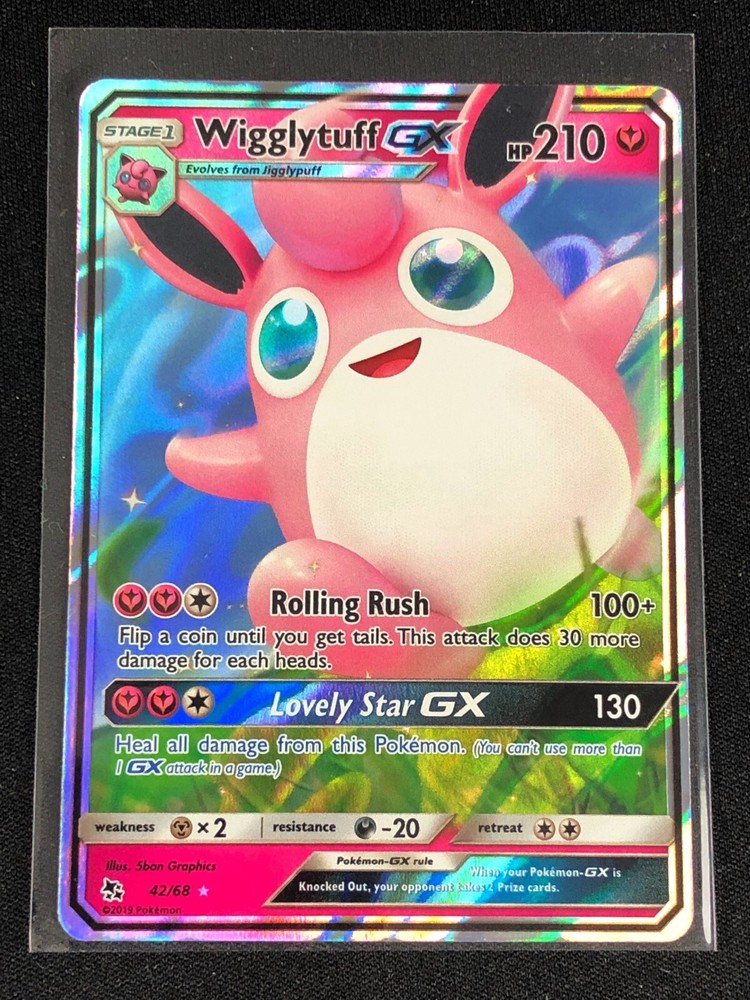 POKEMON WIGGLTTUFF GX 42/68 ULTRA RARE NM ALL CARDS IN THIS AUCTION ARE IN NEAR MINT TO MINT CONDITION UNLESS STATED OTHERWISE IN THE TITLE. AND, YOU ARE GUARANTEED TO RECEIVE THE CARD NAMED IN THE TITLE. PLEASE NOTE, IF THERE'S MORE THAN 1 COPY AVAILABLE, YOU MAY NOT RECIEVE THE SAME EXACT CARD IN THE PHOTO. HOWEVER, IT WILL BE THE SAME EXACT CARD IN THE TITLE, AND DESCRIPTION! PLEASE CONTACT ME IF THERE IS ANYTHING WRONG WITH YOUR ORDER OR SHIPPING BEFORE LEAVING FEEDBACK. PLEASE GIVE ME A CHANCE TO FIX ANY PROBLEM YOU MAY HAVE. THANK YOU! Shipping Information: Shipping and Handling for this auction will be Free inside the United States - With Tracking! International Shipping Available Through Ebay’s Global Shipping Program. (BUYER IS RESPONSIBLE FOR ANY TAX) **Read the TITLE to see the condition of the cards Before you place a bid. Any damaged cards will be listed as such In The Title (FOR EXAMPLE: Blue Eyes White Dragon LOB-001 - Play/Edgewear). If it doesn't say anything about damage, it is in near-mint to mint condition. If you have any questions, message me Before you place your bid.** RETURN POLICY: RETURNS ARE ACCEPTED IF THE ITEM ARRIVES DAMAGED, OR NOT AS DESCRIBED. RETURNS ARE NOT ACCEPTED FOR BUYERS REMORSE. CHECK OUT MY OTHER AUCTIONS! _gsrx_vers_1536 (GS 9.4 (1536))