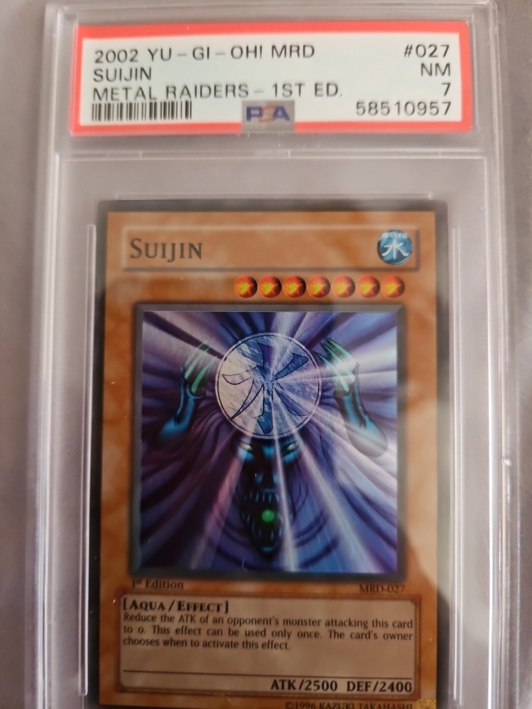 PSA 7 Yugioh Suijin MRD-027 Super Rare 1st Edition FADED. Condition is Graded. Shipped with USPS Ground Advantage....