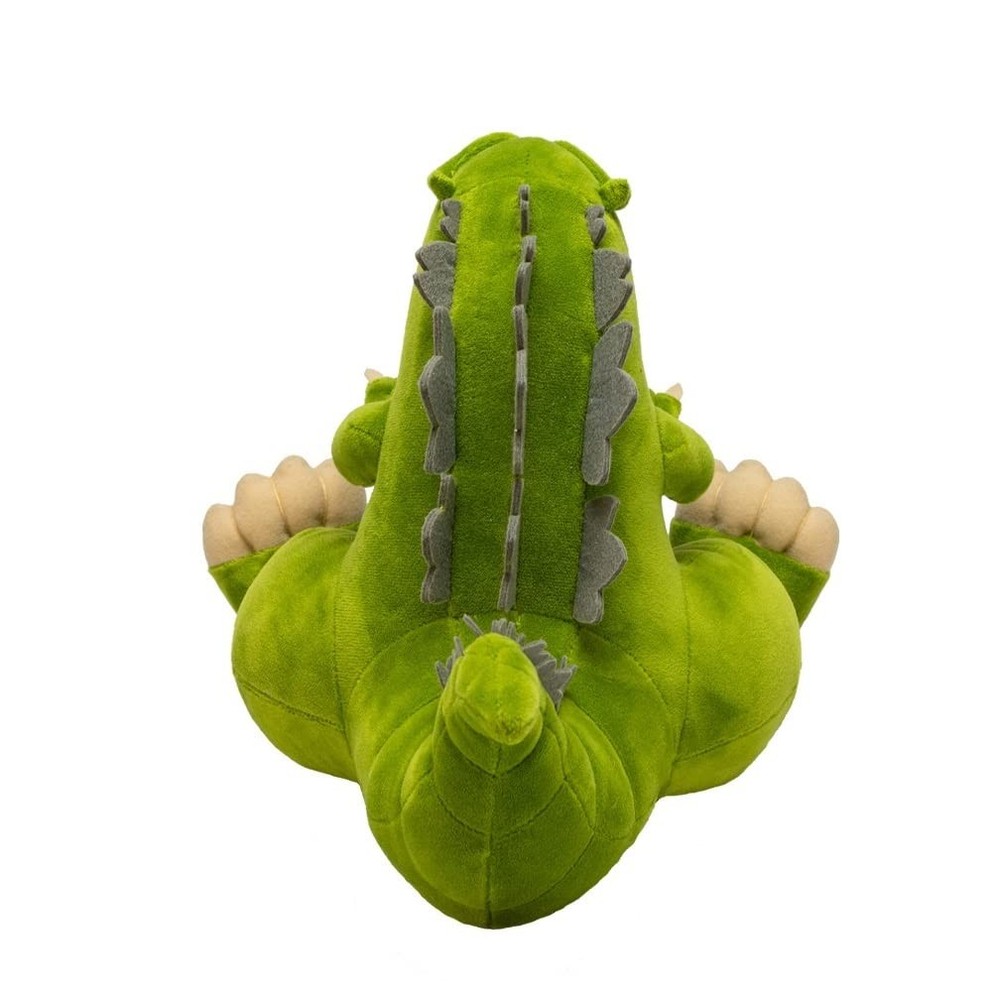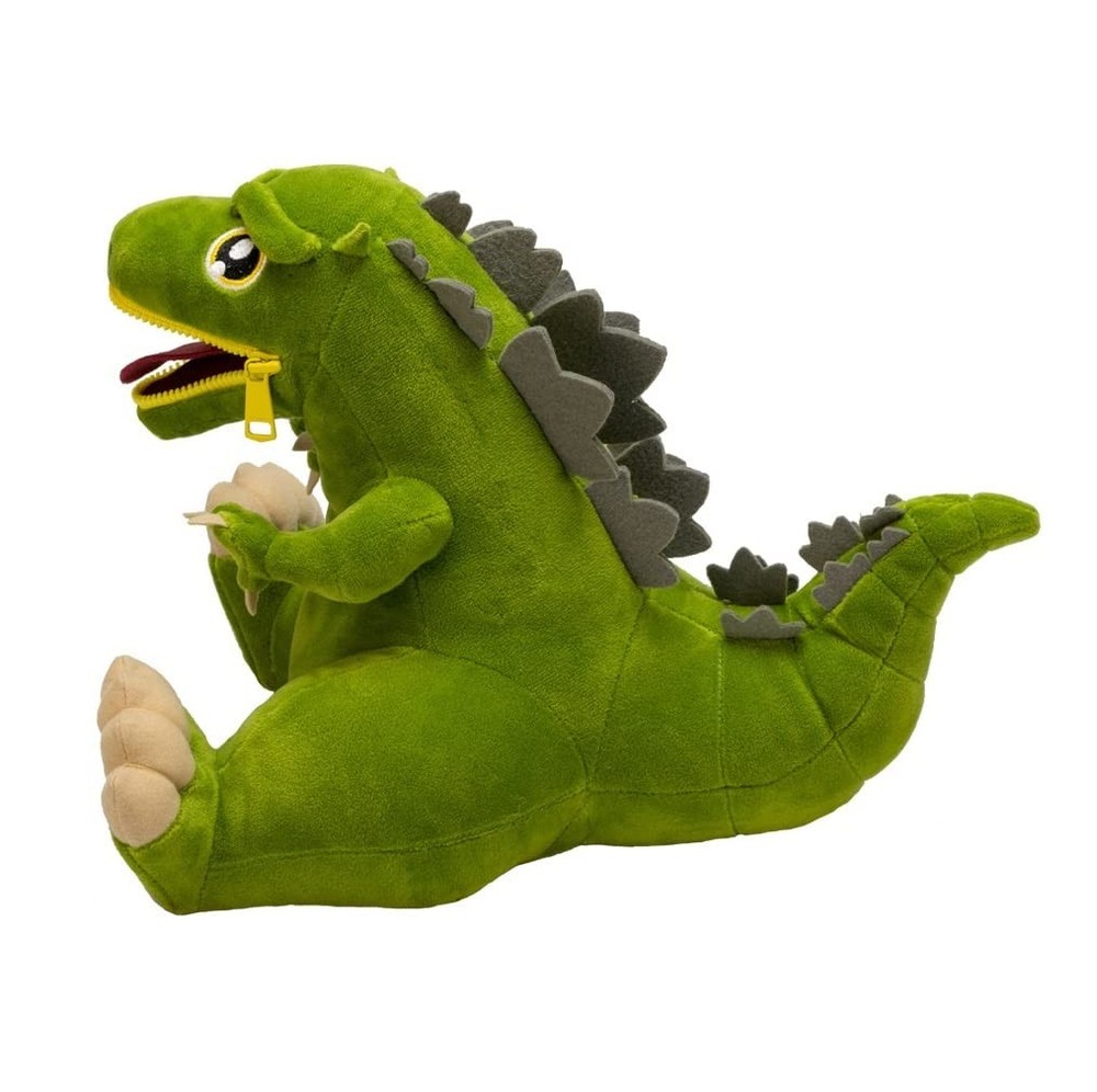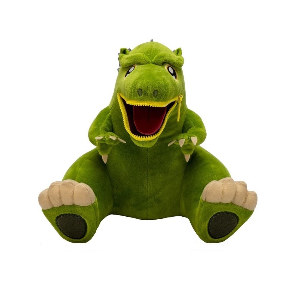From Quantum Mechanix A PREVIEWS Exclusive! sitting at 8.75" tall When unzipped, his mouth reveals a large red heat ray and a presumably equally large appetite His bright green body, pointy gray dorsal fins covering his back, fierce felt claws, and serious brow are all part of what comes together to elevate this plush to collectible status