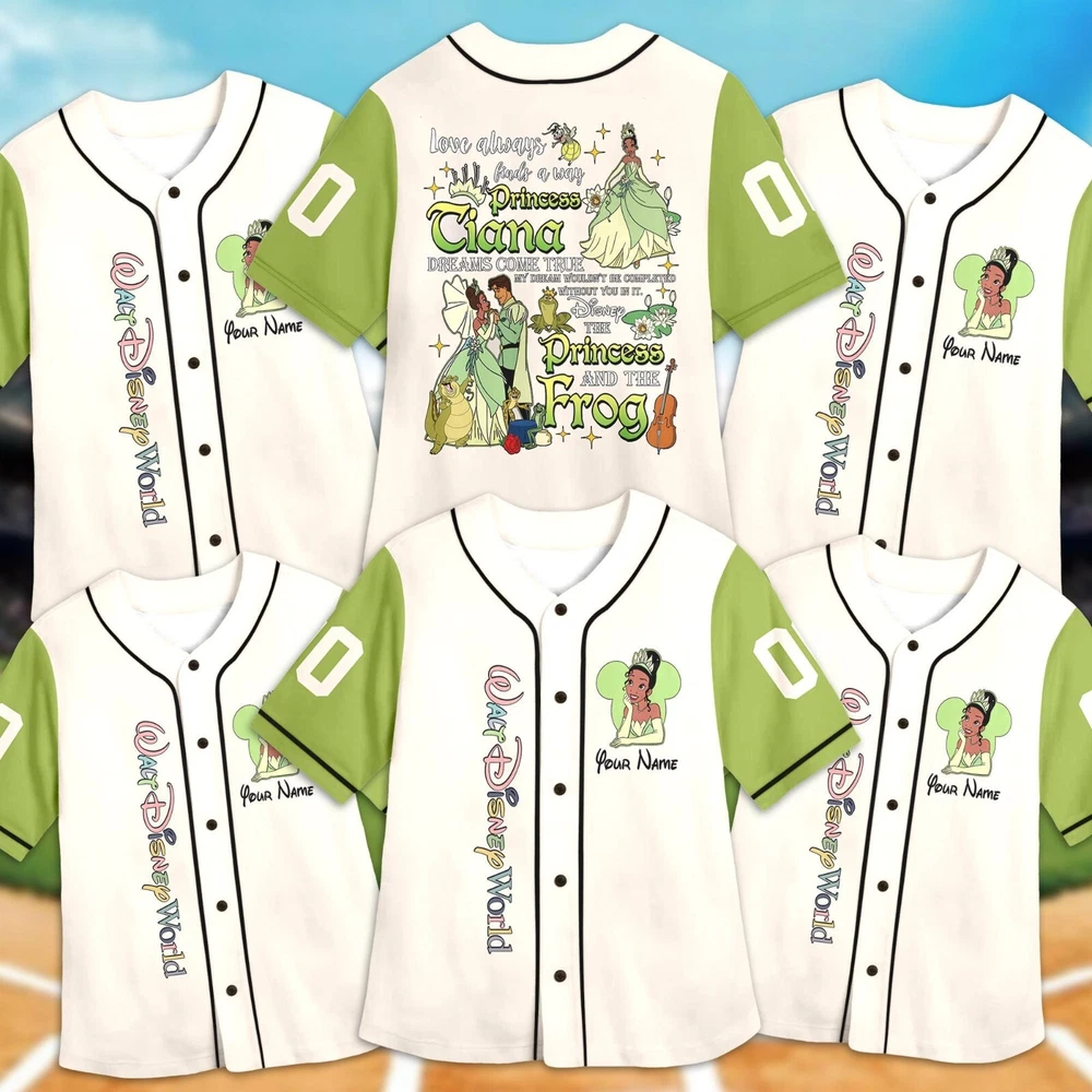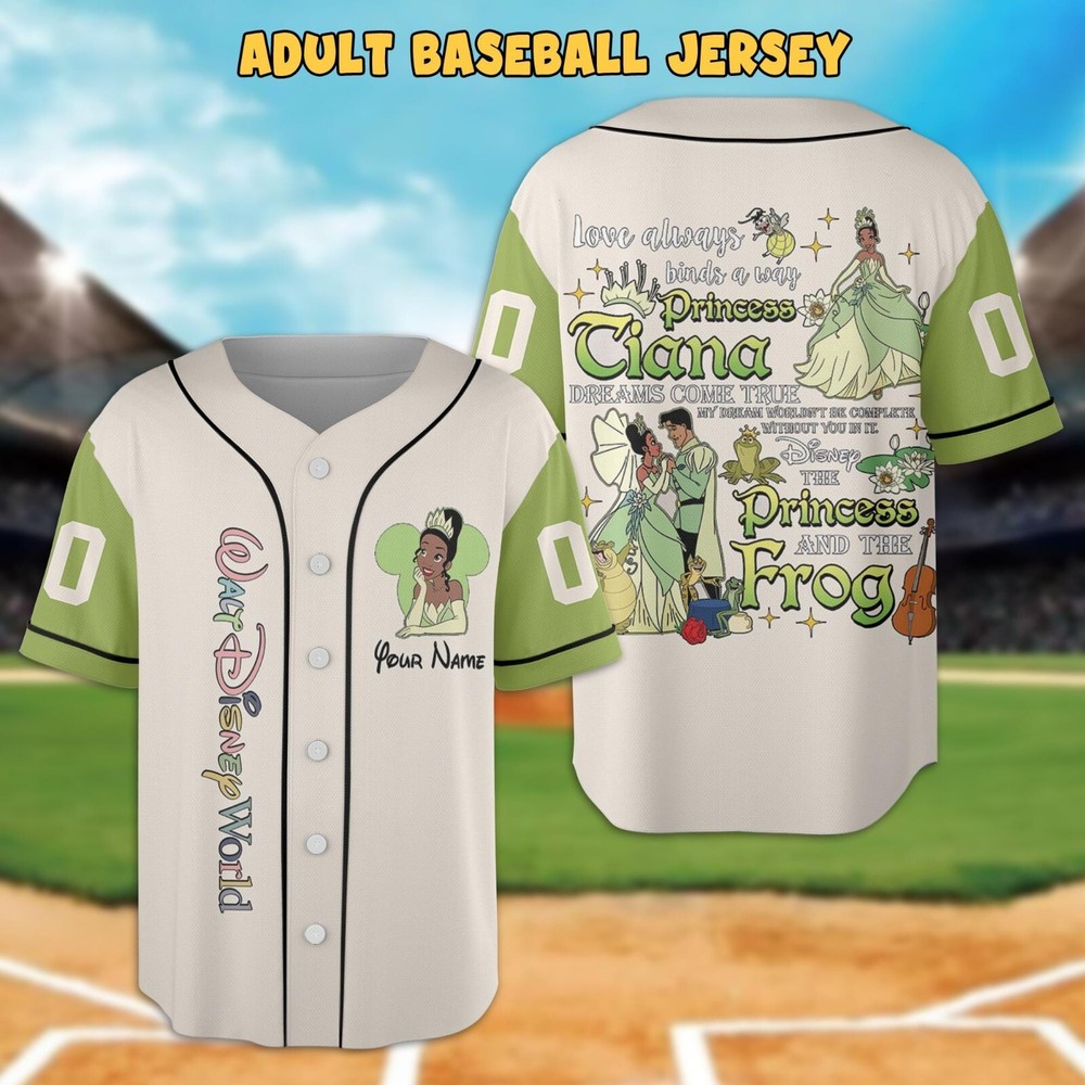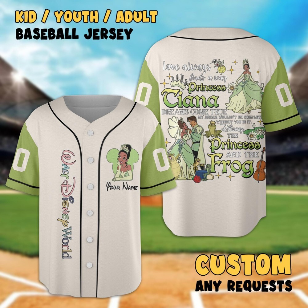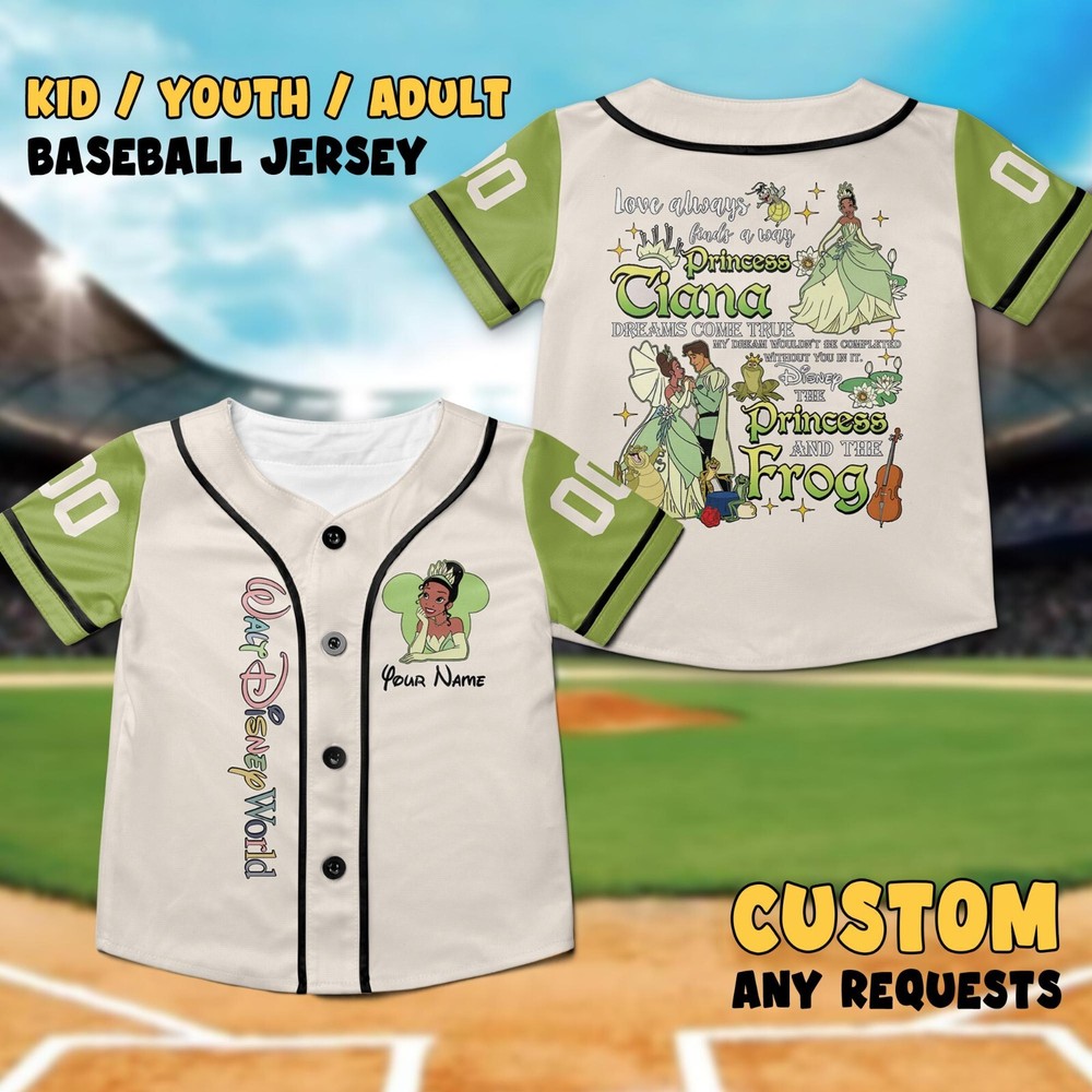 Custom Disney Princess Tiana Baseball Jersey for Kids Adults Gift