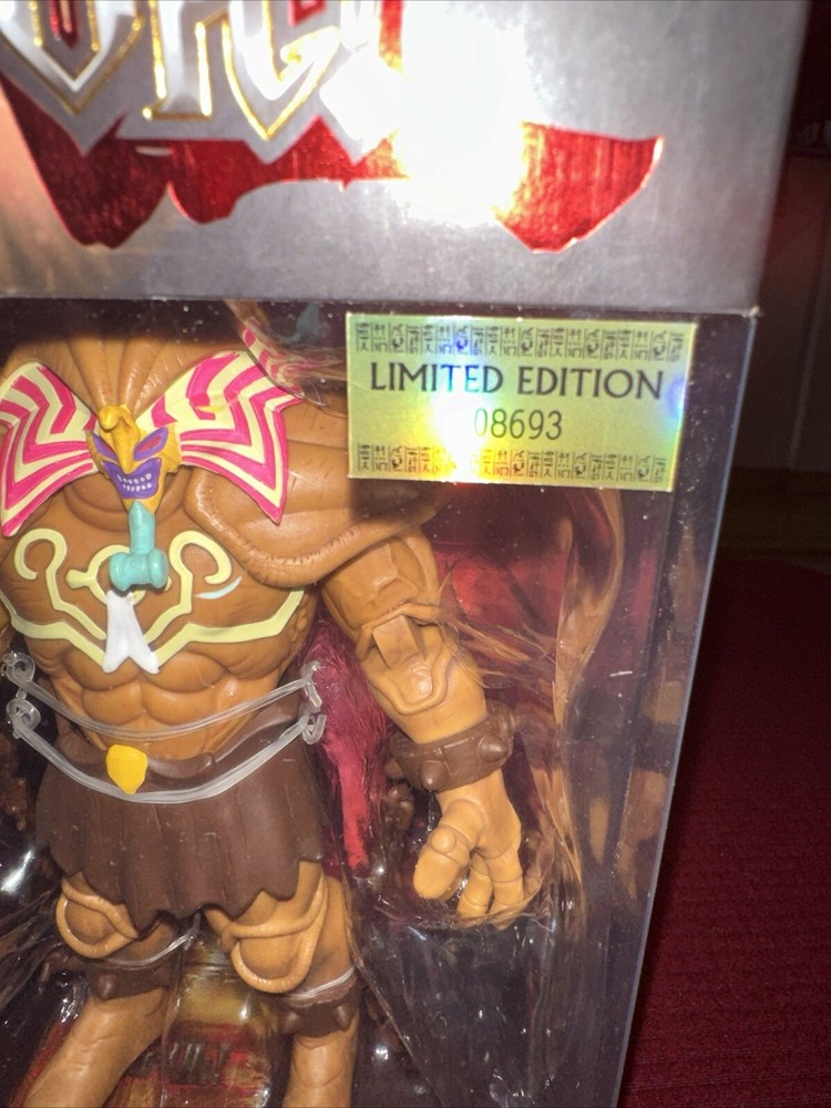 The PhatMojo Yu-Gi-Oh! Exodia The Forbidden One Series 1 Limited Edition #08693 is a multicolored action figure of the iconic character Exodia The Forbidden One from the Yu-Gi-Oh! franchise. Manufactured in 2020, this limited edition model comes with an exclusive trading card and is targeted at individuals aged 14 and above who are fans of the Yu-Gi-Oh! TV show and gaming. The figure represents a collectible item for enthusiasts of anime and manga, showcasing detailed features of the character in a plastic material construction.