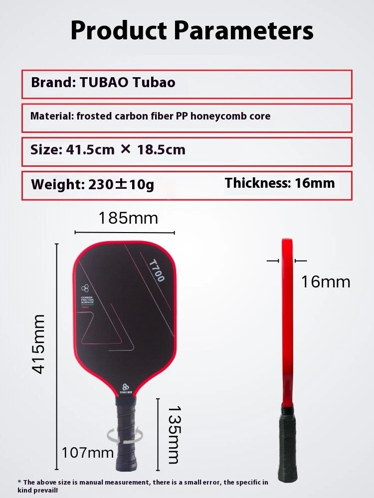 Enhance your pickleball experience with the TUBAO Carbon Fiber Polymer Honeycomb Core Paddle. DeCrafted with precision, the frame is made from durable plastic, while the trim is neat and tidy with nylon accents. The magnetic closure ensures your paddle stays secure between games. The racquet's features include a padded design for optimal control and reduced vibration, enhancing your play without compromising on comfort.