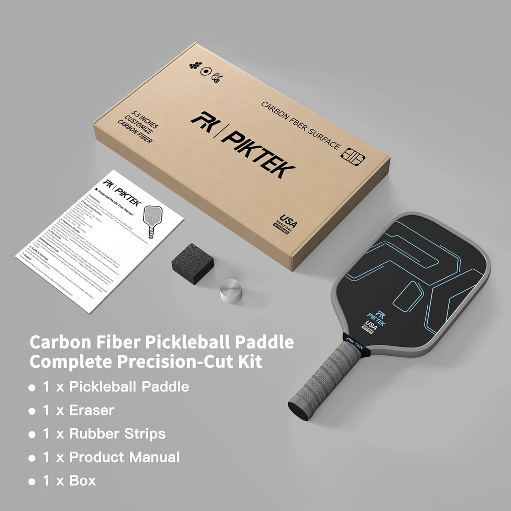 100 T700 Carbon Fiber Pickleball Paddle, Sharkskin Spin Control and Lightweight & Durable The 100 is engineered for players who demand precision and power. Crafted with a T700 carbon fiber blade and a cold-cut polymer honeycomb core, this paddle delivers unmatched speed and spin control. The sharkskin-textured surface enhances ball grip for aggressive shots, while the ergonomic sweat-resistant grip ensures comfort during marathon matches. Key Features: Lightweight Design: Only 7.76oz (220g) for quick reflexes and reduced fatigue Durable Construction: Cold-cut edges eliminate weak spots and resist delamination Versatile Spin: Ideal for dinks, drives, and volleys in both recreational and competitive play Free Replacement Parts: Includes eraser and rubber strips for on-the-go maintenance Why Choose Us? Our paddle outperforms competitors with its aerospace-grade materials and patented texture technology. Backed by a 30-day satisfaction guarantee, it’s the perfect choice for serious players seeking a tournament-grade edge. 【Carbon Fiber Pickleball Paddle】Good quality T700 carbon fiber pickleball paddle for drives & drops, dominate every rally with Sharkskin Carbon Surface, precision-engineered grooves enhance ball grip for superior spin control. Master topspin lobs, slice serves, and third-shot drops during backyard family games or competitive rec center matches. Our paddle use high quality pickleball paddles carbon fiber also wonderful pickleball gifts for women & men. 【All-Day Comfort Design】Lightest carbon paddle for wrist relief, at 7.76oz (220g), our honeycomb polymer core absorbs vibrations during 3-hour marathon sessions while boosting reaction speed for rapid dinks and fast volleys. Ideal for players transitioning from heavy fiberglass paddles or managing joint sensitivity. Ideal pickle gifts for friend & family. It's also ideal pickleball training paddle. 【Weatherproof Control Grip】Non-slip pickleball paddle for humid climates, the 4.2" cushioned handle locks in palms during Florida summer tournaments or Seattle drizzle sessions, with replaceable tape to adjust thickness. Deep ridges prevent slips better than standard grips, keep dominance even when palms sweat. 【Impact-Tough Carbon Frame】Concrete court-ready pickleball paddle, built with T700 carbon edges and honeycomb reinforcement, survives many smashes on asphalt driveways or indoor gym floors. Engineered for power slams and backhand blocks, no dead spots or warping after accidental court collisions. Edge guard pickleball paddle can significantly improve the service life of the racket. 【What You Get】1 premium USAPA-approved carbon fiber pickleball paddle (single unit),a paddle eraser,a free rubber grip and car-trunk-friendly box. Note: This listing is for an individual pickleball paddle, designed for solo players or mixed doubles compatibility. Compatible with ALL Series pickle ball paddles. Whether you're a seasoned professional player or a beginner, this pickleball paddle set provides all the essential gear for exciting matches with friends and family.