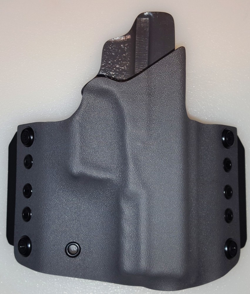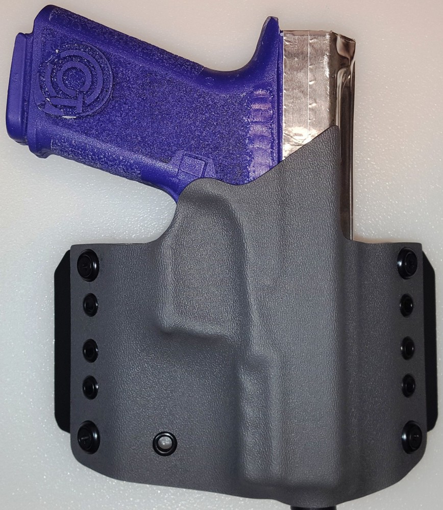 This is a rugged OWB style holster for the Polymer 80 PF940C Lower with G19 / 23 Gen. 3 Slide) . The holster is produced by the team of public safety professionals from Darwin Defense and designed for use by the most demanding Military, Law Enforcement, or Civilian end user. Choose your Color.....Tell us your specs..... We're sure you'll feel confident knowing that Darwin Defense is on your side You will not regret purchasing this holster! The retention is excellent, positive, and secure! All Holsters made with .080 material! (Kydex, Boltaron, and/or Holstex) All holster material is chemically bonded as well as secured with eyelets. This holster will fit your weapon like a glove! Belt attachments "Wings" are available in 1.50", 1.75", or 2.0". (Item shown with 2.0" Wings) Additional Belt attachment types include, Standard Belt Loops (slanted), Speed Clips, or Mini-Wings. Molle or Molle-Lok attachments also available at additional charge. (Please specify belt attachment size and type preference when ordering) All holsters are available in your choice of Black, Carbon Fiber, or any other color, just let us know what you need........ Compare to holsters that cost at least $20 or even $30 more, there's no contest!! The functionality is there! The styling is there and all of the components are of the highest quality and durability!!! Get the holster you need and save some $$$ Put a Darwin Defense holster on your side!! Please take a moment to look at our other items offered. All holsters are available for Right and Left handed shooters. Let us know what you want and we will do our best to accommodate your request. The best holster for you is one your going to use! Darwin Defense is an avid supporter of the Second amendment and supports organizations that further our cause. All feedback, questions or comments are welcome. FREE SHIPPING !