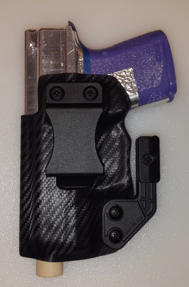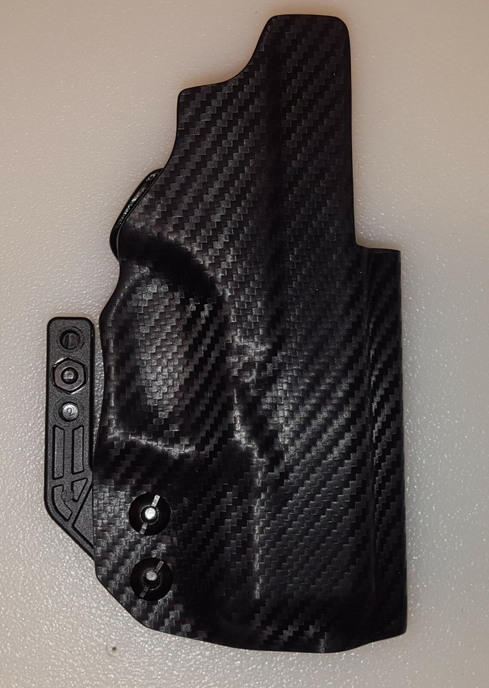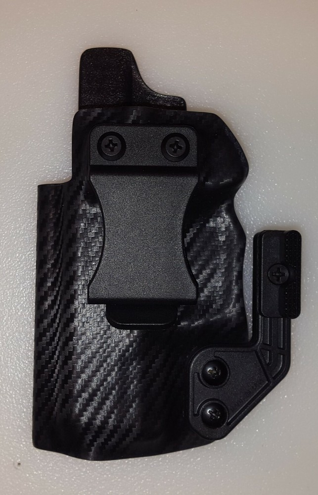 (Left Handed model shown) This is a rugged Inside the Waistband (IWB) style holster produced and designed for use by the most demanding firearms owner.. This is the POLY 80 Holster for you! This holster includes a side mounted Claw/Wing. We are happy to customize your holster! Want to change the design? No problem, just contact us. Key Features - Compatible with RMR and Suppressor Height Sights Compatible with threaded barrels Compatible with oversized Magazine releases Constructed of the highest quality materials available Excellent retention, positive, and secure! Excellent Fit & Finish Rugged and comfortable All holsters are available in your choice of Black, Carbon Fiber, or any other color, just let us know what you need........ Available for left or right handed shooters Be confident and put a Darwin Defense holster on your side!! Darwin Defense is an avid supporter of the Second amendment and supports organizations that further our cause.