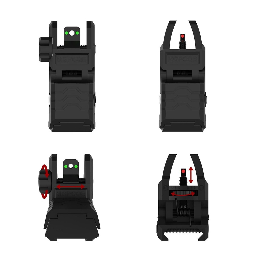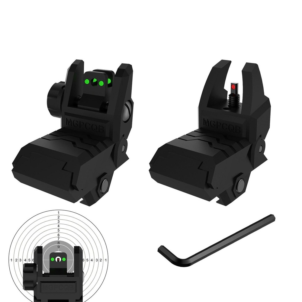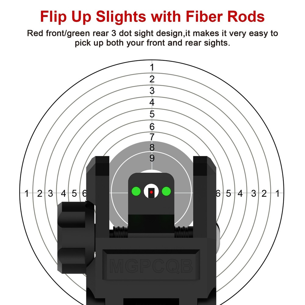 Features: Material: polymer Visible Front Red Fiber Sights and Rear Green Fiber Sights provide the brightest aiming points. Thumb slide flip-up mechanism, sliding the spring load push button to flip-up simply. Spring-loaded flip up sight is easily activated by pulling the back cover, simply press down to fold. Compatible with most 20mm Picatinny/Weaver rails. Not suitable for railed gas blocks. Impact resistant polymer construction provides lightweight and durable. Please take the screw out before you mount, once it is removed they slide on and off easily! Material:Resistant High-density polymer Package includes: 1 × Front Sight 1 × Rear Sight