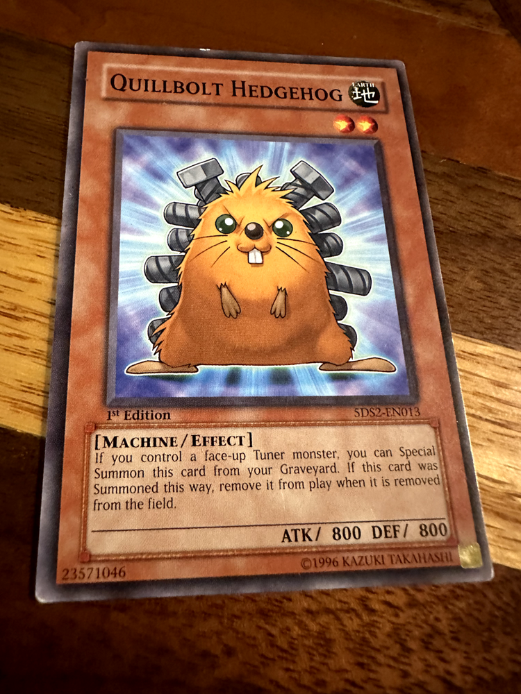 Hello! You are buying one Quillbolt Hedgehog 5DS2-EN013 1st Edition Common in played condition. Reason for played condition is general play/edge/scratchwear. See photos for details! As a thank you for buying from me, I will throw in two free Yugioh commons! Thank you so much for looking, have a great day! If there is ever an issue, please let me know so I can do whatever I can to resolve it! Please check out my other items! I have many more single cards!