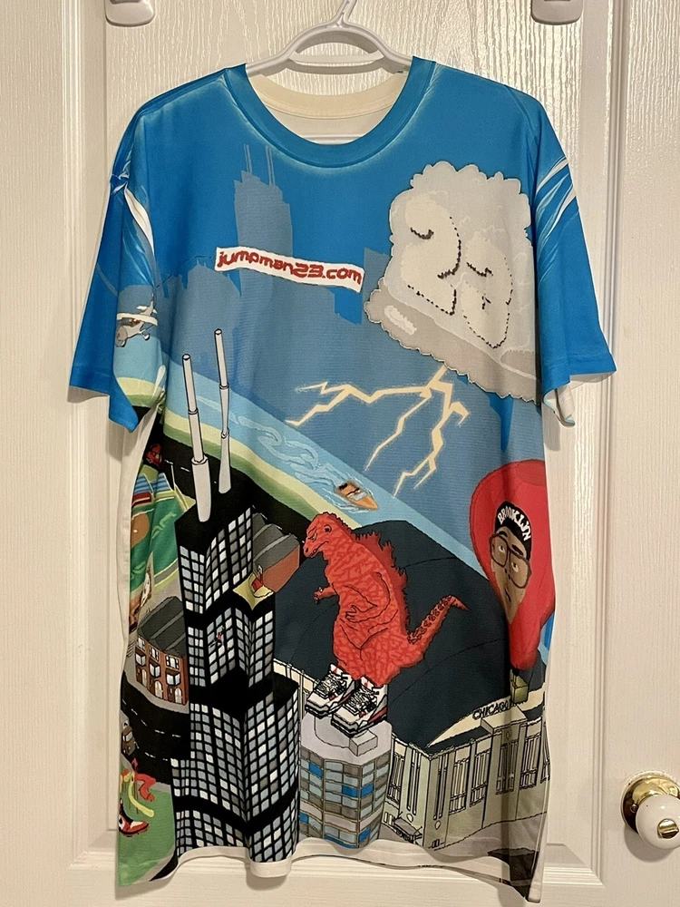 RARE Nike JumpMan VS Godzilla T-Shirt NBA Spike Lee Air Jordan Shirt. Size: XL Dri-Fit Material This shirt has been worn but still in great condition! No tears or rips! Colour still vibrant! Very Rare shirt! 100% authentic guaranteed!