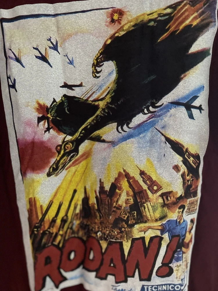 RODAN - movie poster look t shirt- NWOT - HTF - Godzilla movie-Size L. 100% cotton Fruit of the Loom Heavy cotton Tag has been cut