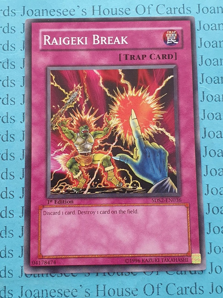 This is a Common Trap Raigeki Break Card text: Discard 1 card, then target 1 card on the field; destroy it. 5DS2 -EN036 1st Edition English Mint/NMint Condition Totally Original Konami (or your money back!) I will deliver in safe packaging to keep it in perfect condition. Ideal for players and collectors alike. Check out my other items! I will combine postage costs for multiple purchases. Sign up for my email newsletters by adding my eBay Shop to your favourites