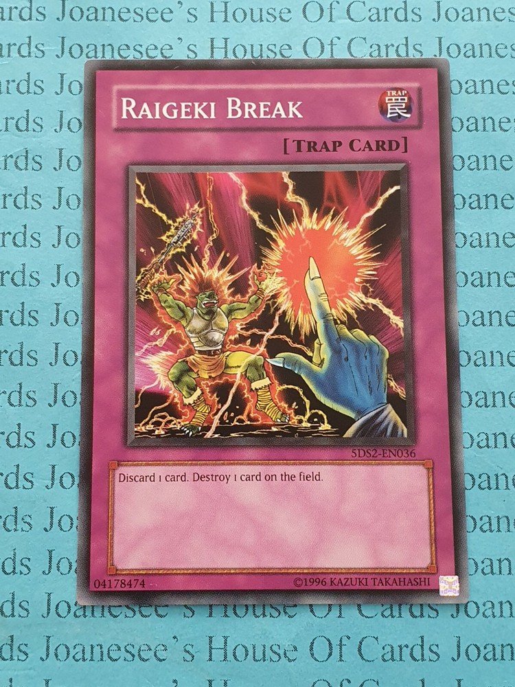 This is a Common Trap Raigeki Break Card text: Discard 1 card, then target 1 card on the field; destroy it. 5DS2 -EN036 Unlimited Edition English Mint/NMint Condition Totally Original Konami (or your money back!) I will deliver in safe packaging to keep it in perfect condition. Ideal for players and collectors alike. Check out my other items! I will combine postage costs for multiple purchases. Sign up for my email newsletters by adding my eBay Shop to your favourites