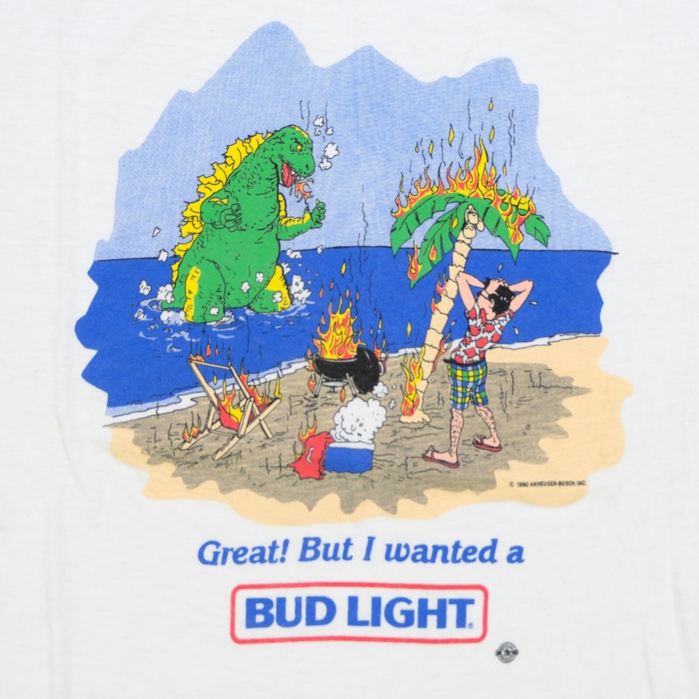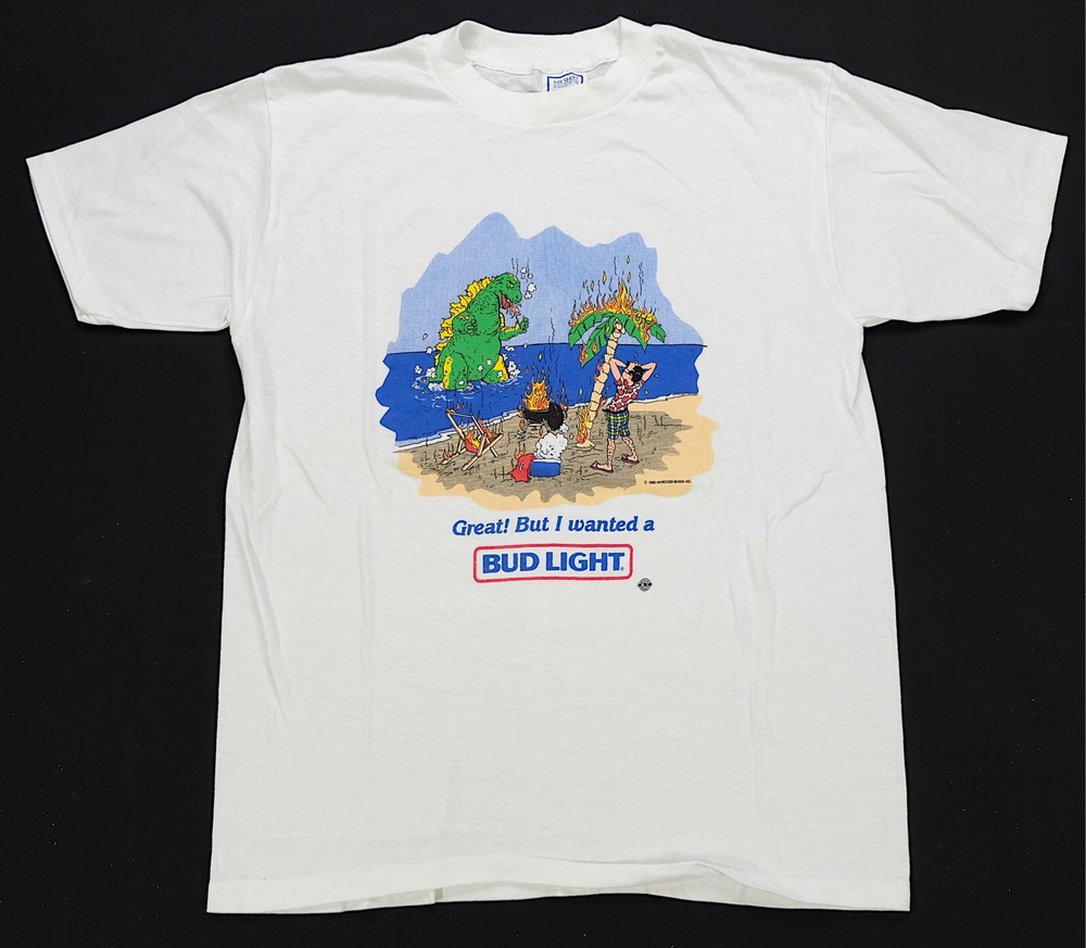 Rare VTG Great But I Wanted A Bud Light 1990 Godzilla Beach T Shirt 80s 90s XL measurements are included in the photographs Thanks for checking out DasCardHaus ! We provide you great deals on vintage clothing items such as shirts, jackets and hats. All items are shipped out via USPS and we use eBay’s global shipping program for international orders. If you have any questions, comments or concerns please ask and we will get back to you as soon as we can. We do our best to fully describe each item that we sell. Please note that we are not perfect and we list a lot of items so we may miss a few small things here and there. Please understand that you are bidding/buying a vintage, rare and often times pre-owned item or piece of clothing. Please ask any questions and look closely at the photos provided before placing your bid or hitting the buy it now button as items are sold AS IS. Thank you again for looking at our listings and please check out our other listings as well for more clothing items - DasCardHaus Items will be packaged safely and securely and shipped via the USPS. _gsrx_vers_1436 (GS 9.0.5 (1436))