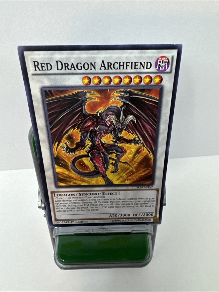 Elevate your Yu-Gi-Oh! TCG collection with the formidable Red Dragon Archfiend, a card that promises to bring a balance of terror and strategy to the table. From the Legendary Collection 5D's set, this creature/monster type Dragon card, with an attack/power of 3000 and a defense/toughness of 2000, is a force to be reckoned with. The Red Dragon Archfiend, card number LC5D-EN069, is a Synchro, Effect card that comes as a 1st Edition, adding a layer of exclusivity to your deck. Published by Konami and featured in English, this card is a must-have for players looking to enhance their game with a touch of dark rarity.