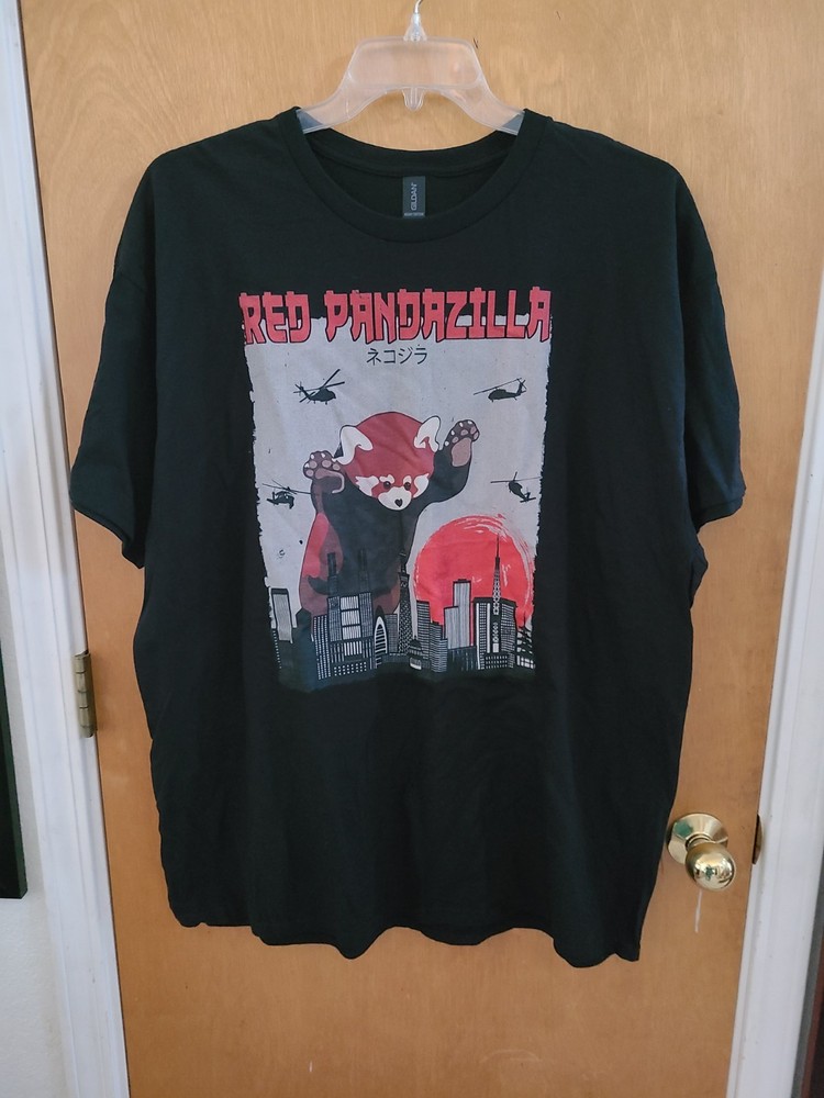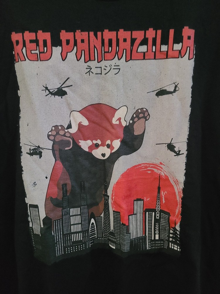 Red Pandazilla Graphic Print Black Tee Shirt, Gildan Heavy Cotton, 2XL It's a red panda attack! Of cuteness! 🐼 Excellent condition, 25" pit to pit flat. Happy to combine shipping if you see something else you want!