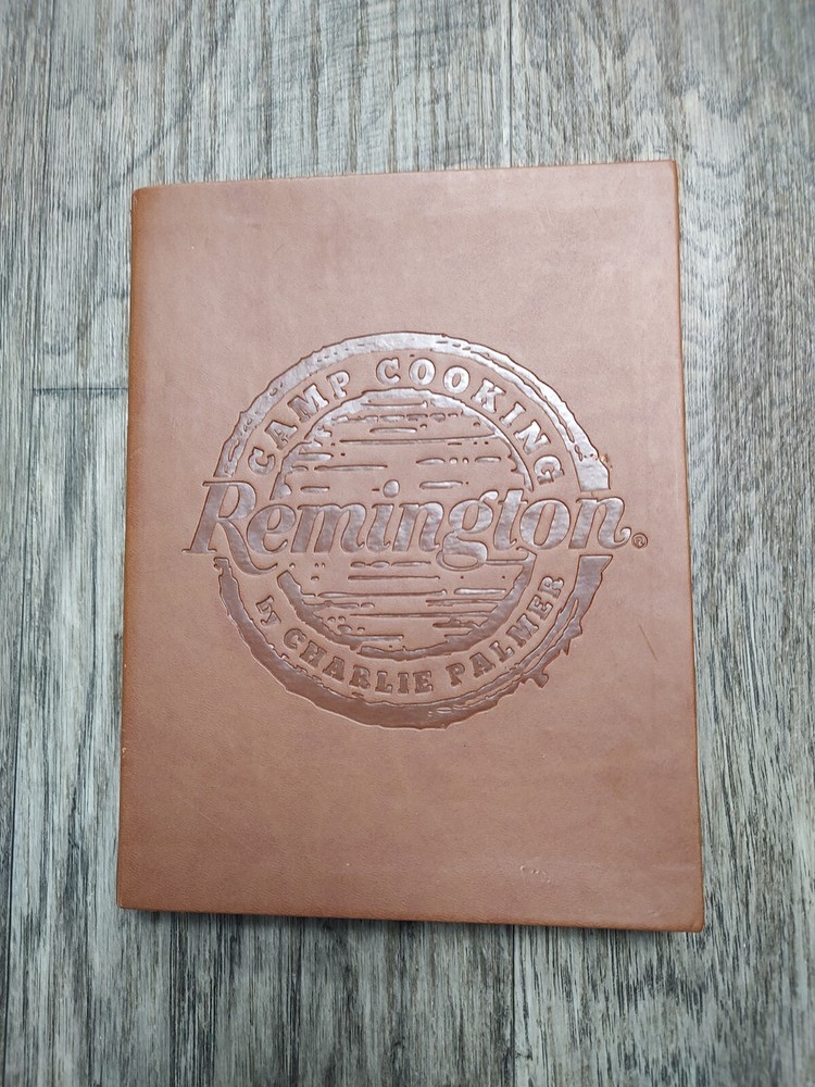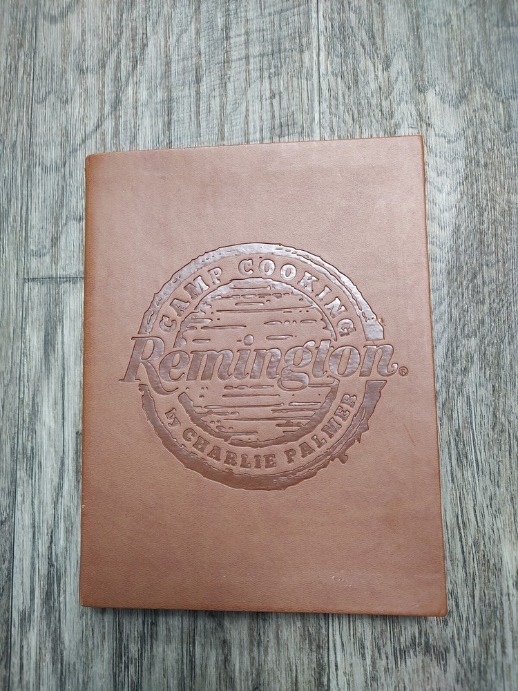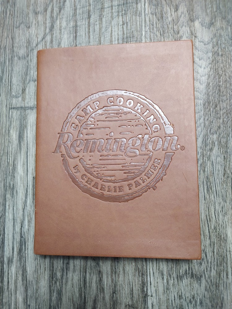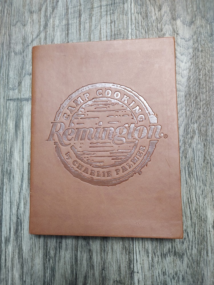 Has provenance of being an award for something Beautiful leather bound cookbook This cookbook titled, "Remington Camp Cooking Book by Charlie Palmer Cook Book" is the perfect addition to any kitchen. With 271 pages of recipes and tips, this cookbook covers a wide range of topics such as cooking by ingredient, American regional cuisine, and general cooking. The book is authored by Cpoc LLC and published in 2013. The leather-bound cover adds a touch of elegance to this cookbook, making it a great gift for any cooking enthusiast. The book features illustrations by Jody Horton and is in English language. This cookbook is personalized for the reader, with inscriptions available. Whether you're an experienced cook or just starting out, this cookbook is a must-have for anyone who loves food and drink.