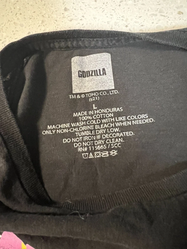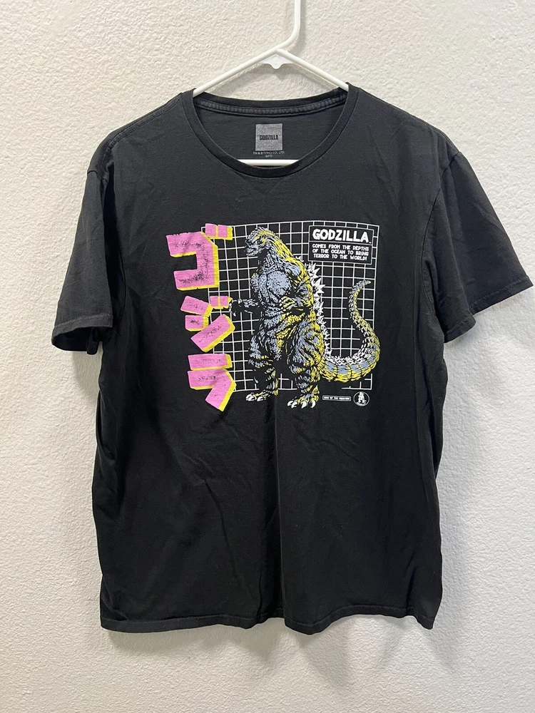 Retro Godzilla Tokyo Japan Black Cotton Graphic Tee/T-Shirt Mens Size L.