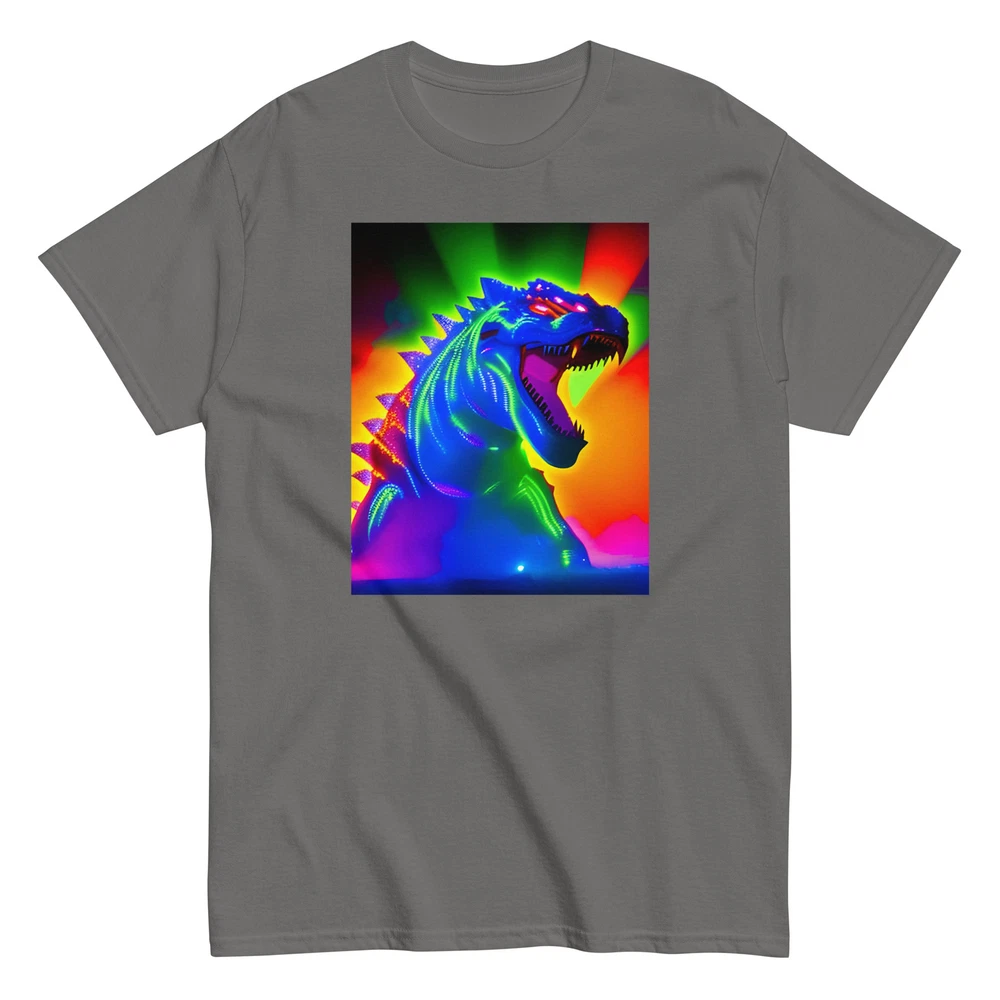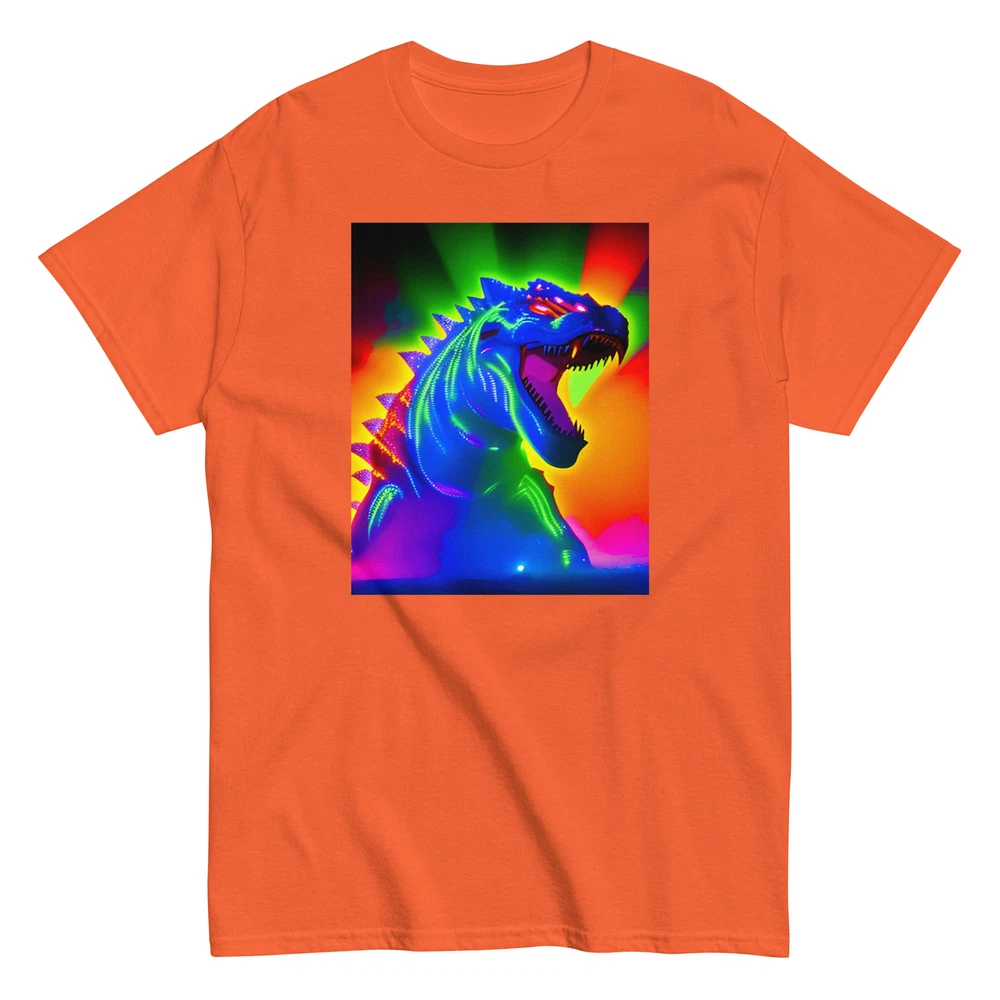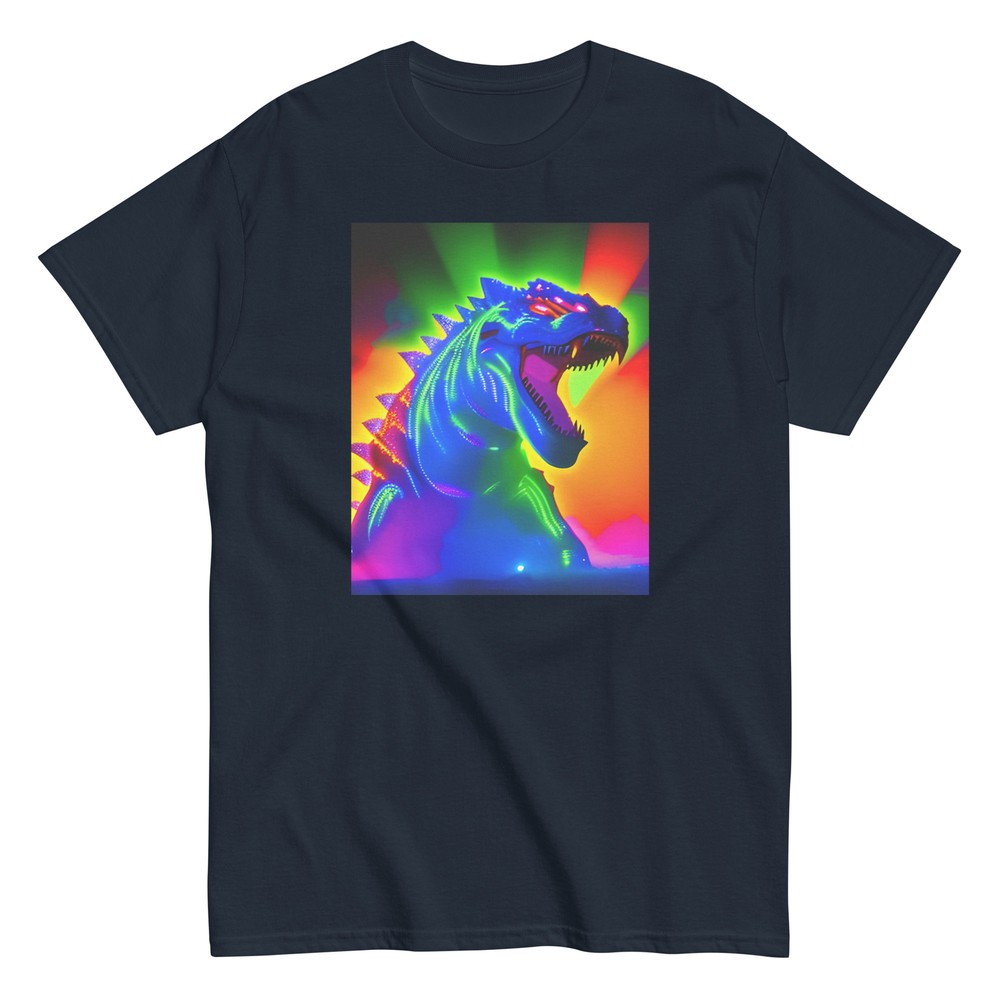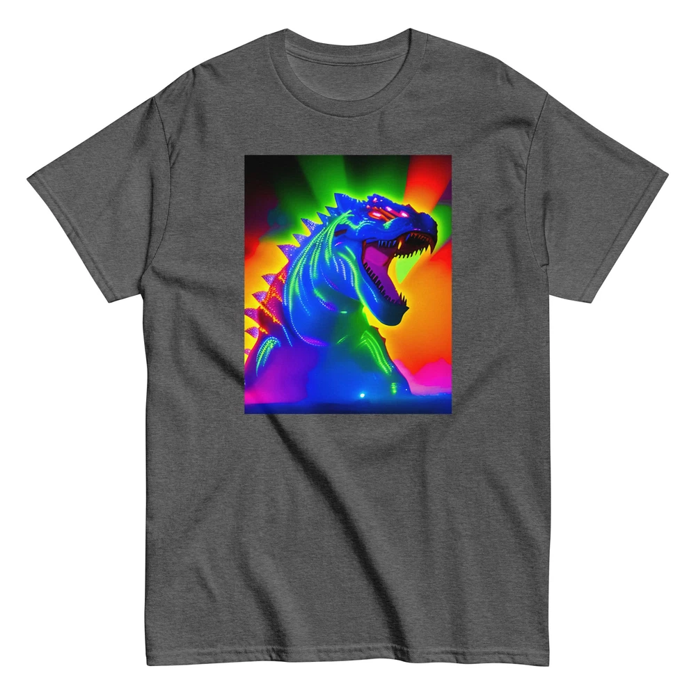 Awesome retro Neon Godzilla design for the iconic Godzilla lover! The 100% cotton men's classic tee lookls awesome in many colors. It sits nicely, maintains sharp lines around the edges, and goes perfectly with layered streetwear outfits. Gildan 5000 style • 100% cotton • Sport Grey is 90% cotton, 10% polyester • Ash Grey is 99% cotton, 1% polyester • Heather colors are 50% cotton, 50% polyester • Taped neck and shoulders • Double seam at sleeves and bottom hem Disclaimers: • Due to the fabric properties, the White color variant may appear off-white rather than bright white. • Dark color speckles throughout the fabric are expected for the color Natural. This product is made especially for you as soon as you place an order, which is why it takes us a bit longer to deliver it to you. Making products on demand instead of in bulk helps reduce overproduction, so thank you for making thoughtful purchasing decisions! Size guide LENGTH (inches) WIDTH (inches) SLEEVE LENGTH (inches) S 28 18 15 ⅝ M 29 20 17 L 30 22 18 ½ XL 31 24 20 2XL 32 26 21 ½ 3XL 33 28 22 ¾ 4XL 34 30 24 ¼ 5XL 35 32 25 ¼