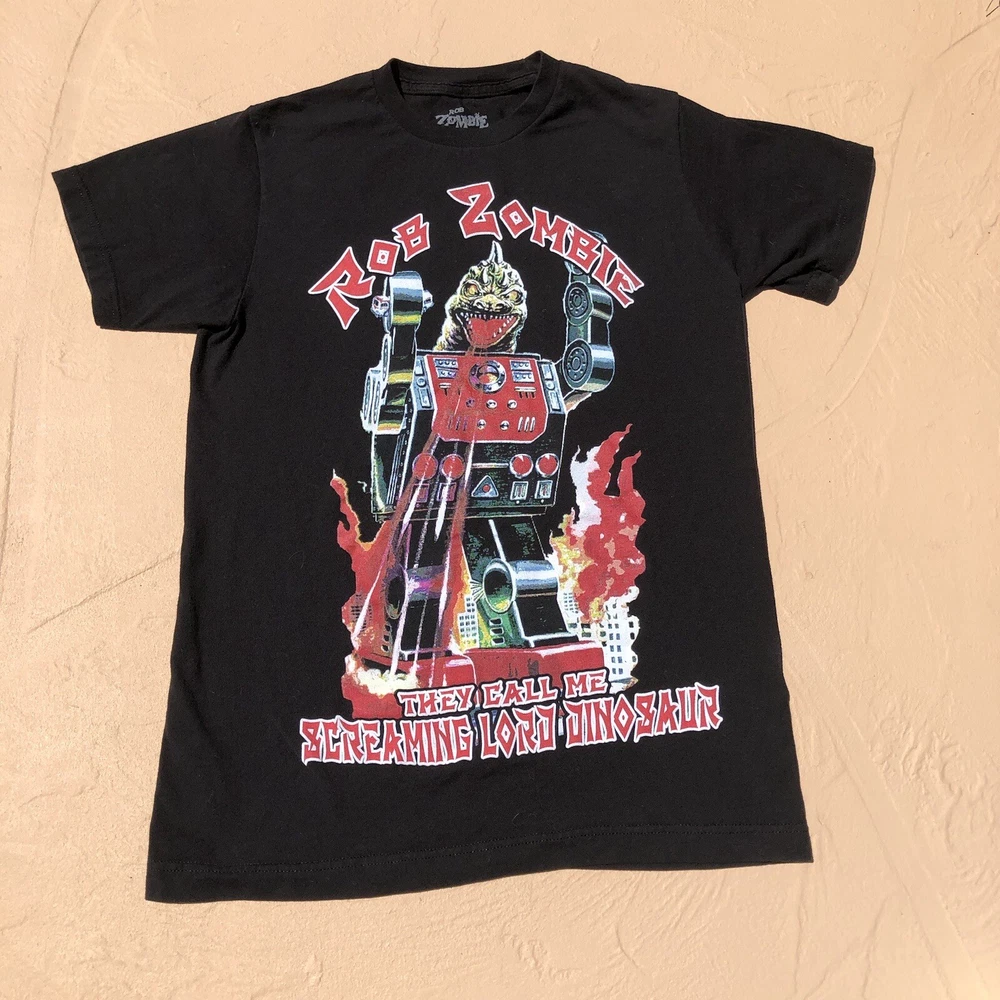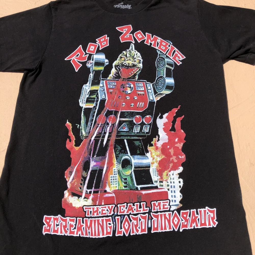 Rob Zombie Screaming Lord Dinosaur Band Shirt Robot Godzilla Black — Size Large. Condition is Pre-owned. Shipped with USPS Ground Advantage....