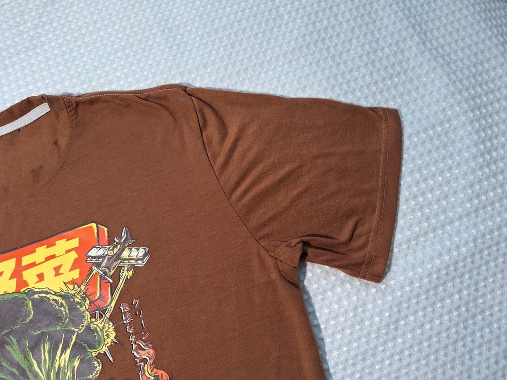 Romwe Broccozilla Anime Japan Brown Cotton T-shirt Size M Broccoli Godzilla,100% Polyester, about 28 inches tall by 21 inches wide at the chest, Good Condition Buy 2 or More Shirts and Get 10% Off Eac...
