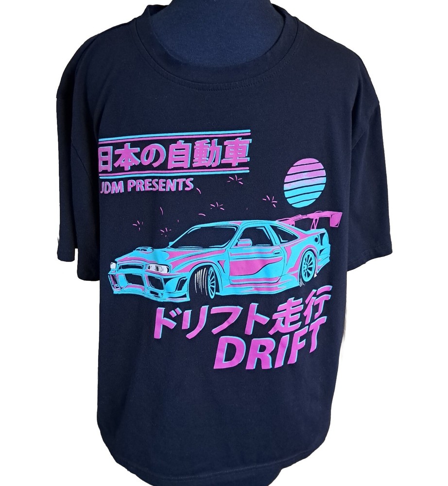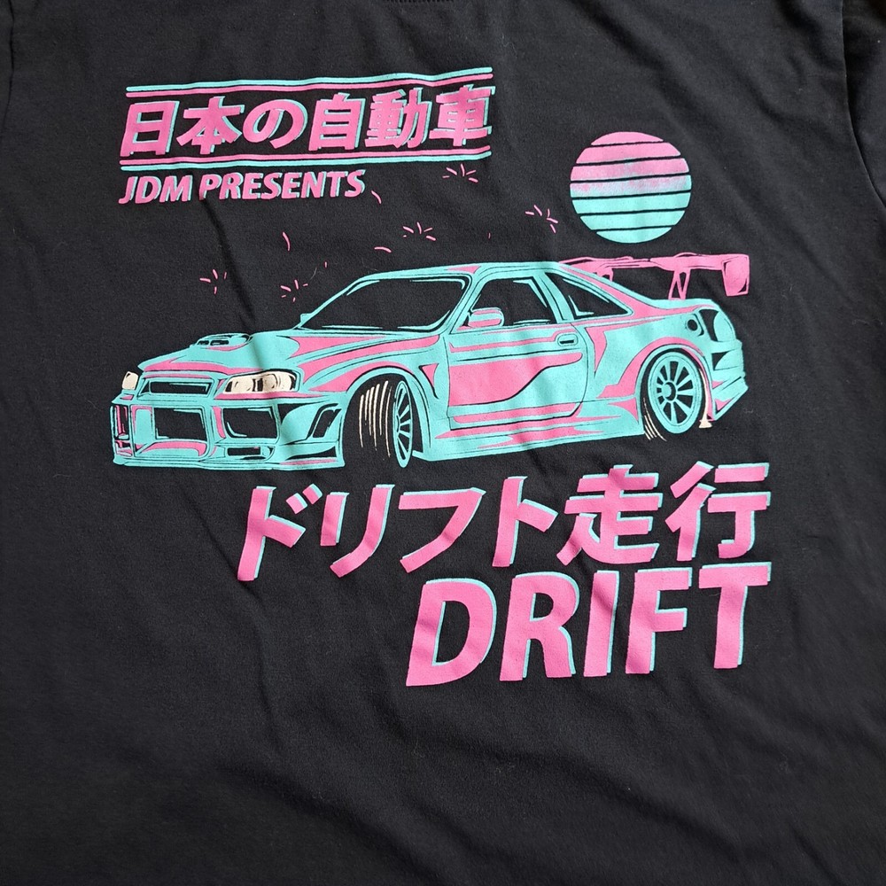 Romwe JDM Presents Drift Skyline GT-R Japanese Short Sleeve T-Shirt Shirt is in good used condition with minor wear. Photos are of actual item. Details/measurements are below and a measurement example is in the photos. Size Large Short Sleeve 21.75" pit to pit 23.75" collar to tail