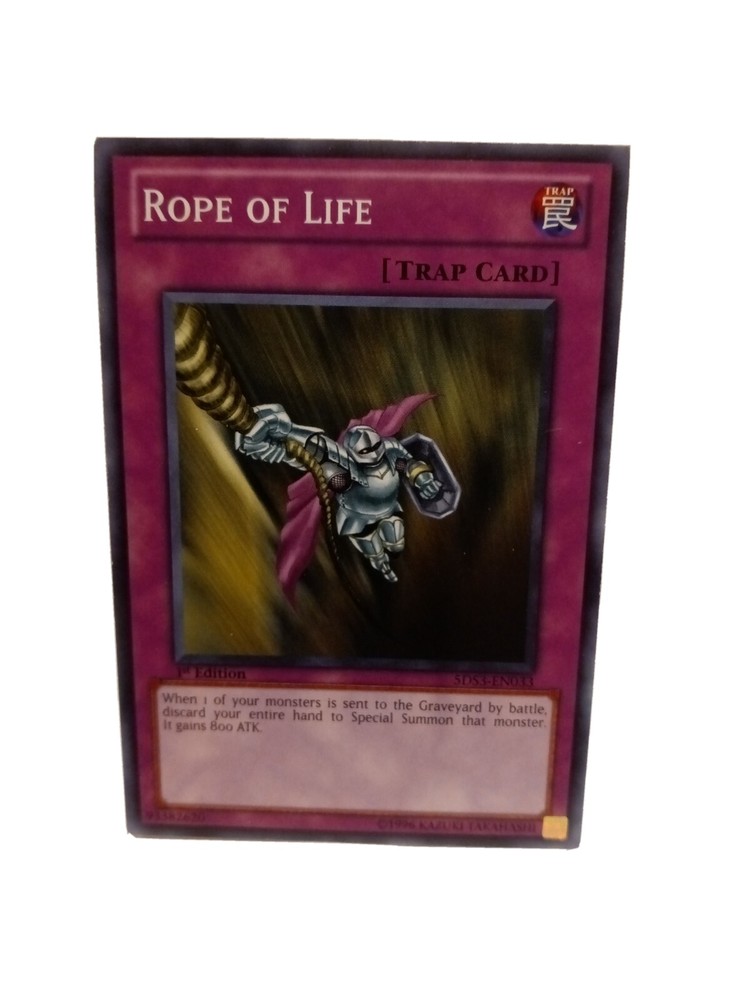 Rope of Life - 5DS3-EN033 - Common 1st Edition Starter Deck: Duelist Toolbox New. Rope of Life - 5DS3-EN033 - Common 1st Edition is a Yugioh Promo Card (no edition) card from the Starter Deck: Duelist Toolbox 1st Edition Singles Yugioh set. This is a Common. Yugioh began back in the mid 90's as a weekly short in Shonen Jump by 1999 the TCG game had launched in Japan. Yugioh has gone on to become one of the top card games in the world and has now surpassed 20 years of competitive play worldwide. Additional Details: B0062E0RZG