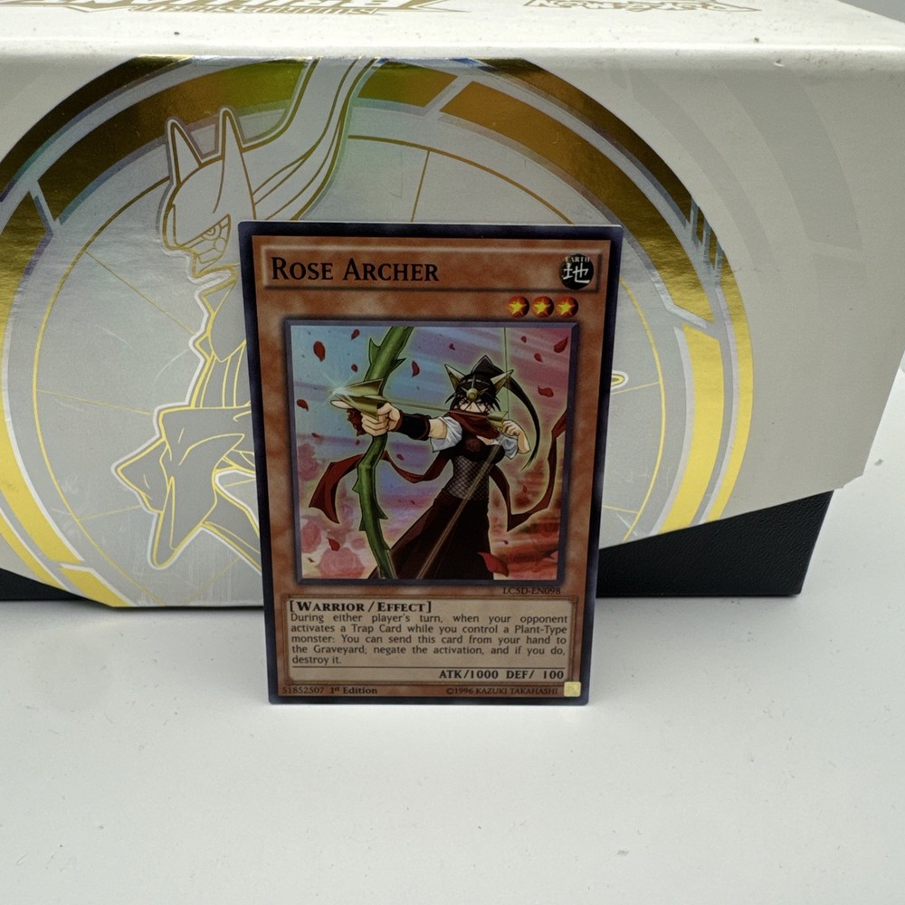 The Rose Archer card from the Yu-Gi-Oh! TCG Legendary Collection 5D's is a powerful Warrior-type card with a high Defense/Toughness and Attack/Power of 100 and 1000 respectively. Being a Super Rare 1st Edition card, it is highly sought after by collectors and players alike. Manufactured by Konami in English language, this Effect card with the card number LC5D-EN098 is a valuable addition to any Yu-Gi-Oh! card collection.