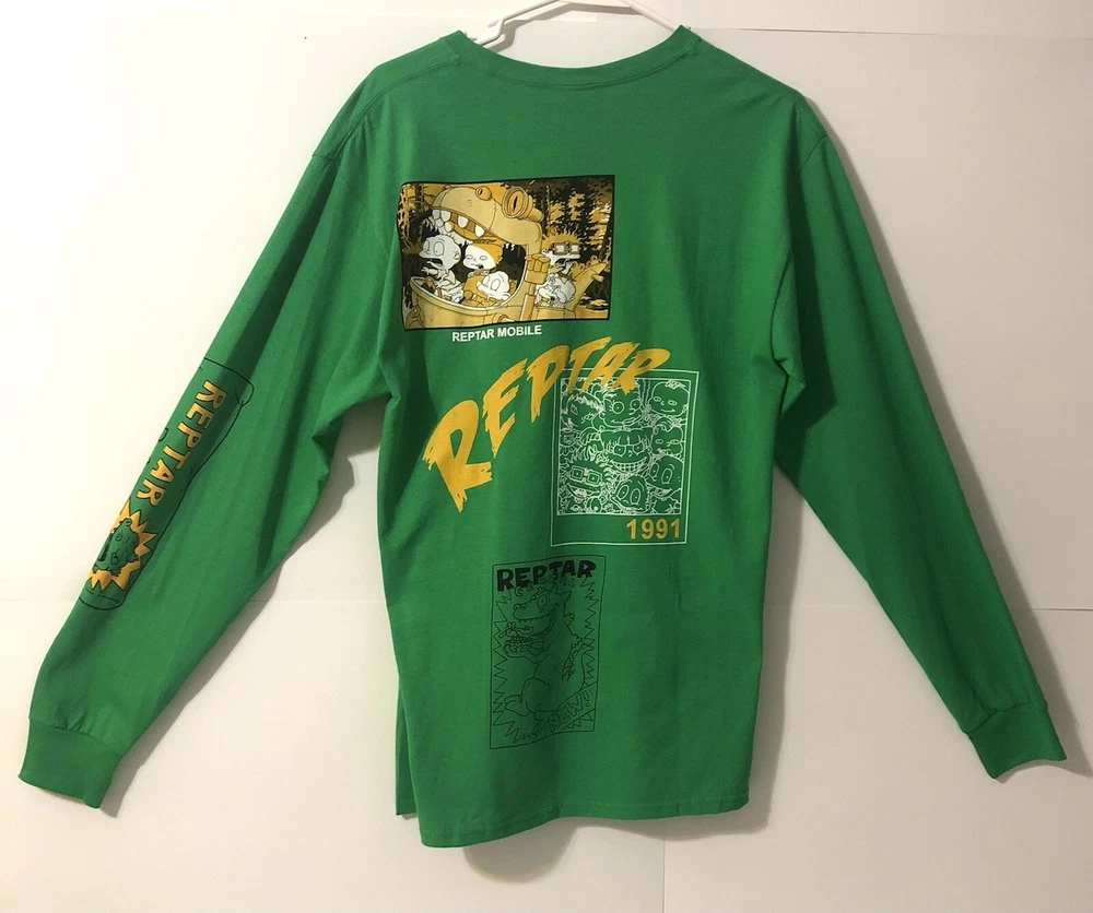 Rugrats Graphic Long Sleeve Tee Shirt Green M T-shirt Rare. Graphics Front, Back and on Sleeves. Super cool, different and creative. Photo styles, colorful and in sepia. 1991 on the graphic. Condition new without tags. Artsy Design, Sleeve Art. Tommy Nickelodeon Rugrats Graphic Long Sleeve Tee Shirt Green M T-shirt Rare. Graphics Front, Back and on Sleeves. Super cool, different and creative. Photo styles, colorful and in sepia. 1991 on the graphic. Condition new without tags. Best offer!