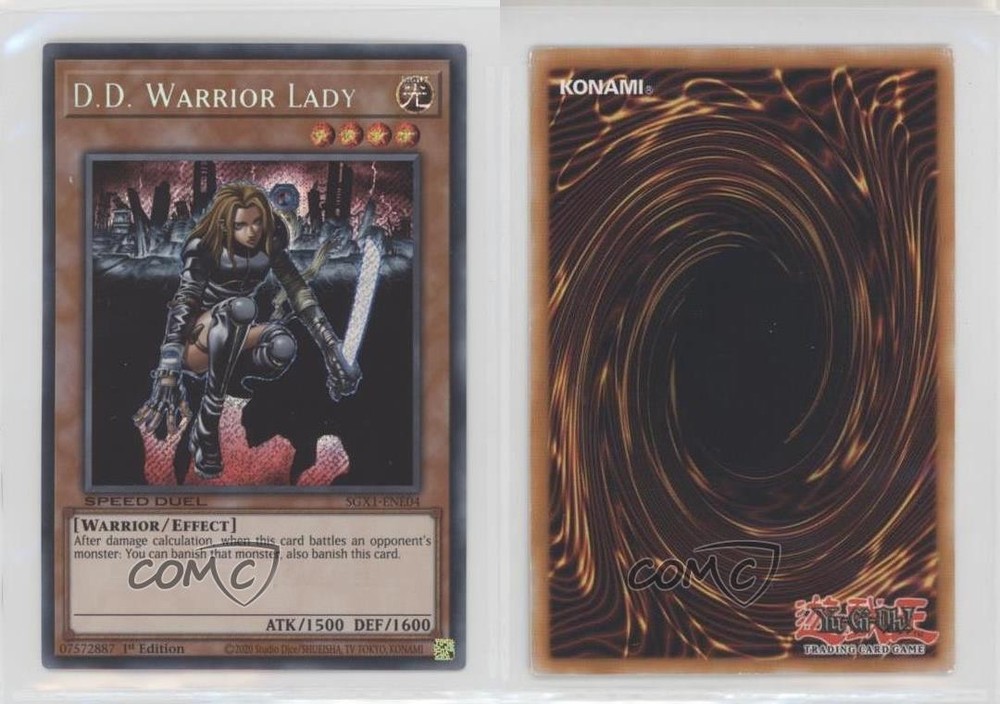 2022 Yu-Gi-Oh! Speed Duel GX: Duel Academy Box - [Base] - 1st Edition #SGX1-ENE04 SCR - D.D. Warrior Lady COMC Item: 151994199 - YuGiOh Card - Featuring D.D. Warrior Lady Search for more: 2022 Yu-Gi-Oh! Speed Duel GX: Duel Academy Box Search for more: 2022 Yu-Gi-Oh! Speed Duel GX: Duel Academy Box - [Base] - 1st Edition View all of our Listings Auctions Buy It Now About Us Located in the beautiful Pacific Northwest, COMC (Check Out My Cards) is the world's largest consignment service for trading card singles. More than 10,000 people have used our consignment service to list over 50 million trading cards. Find out how we can help you consign your items on eBay by contacting us through eBay messaging. COMC -- "The Safe & Easy Way to Buy & Sell" Raw Condition for Modern Cards Unless otherwise noted, raw modern cards are listed in Near Mint-Mint condition or better. A NM-MT card appears to be Mint at first glance, but upon closer inspection, may exhibit some of the following: minor print defects (e.g. roller marks, print line, dimple), minor scratches, slight edge wear, and slight corner wear. Centering is clearly visible in the images provided and does not factor into our condition assessment. Raw Condition for Vintage Cards Unless otherwise noted, raw vintage cards are listed in Excellent condition or better. An EX card may exhibit some of the following: minor rounding of corners, surface wear, print defects, light scratches, and slight edge wear/chipping. Centering is clearly visible in the images provided and does not factor into our condition assessment. Domestic Shipping Combined shipping for multiple items is available. To receive combined shipping, please ensure all desired items are in your eBay shopping cart before proceeding to checkout. eBay limits orders to 40 items per order. We automatically combine multiple orders placed on the same day. If you place multiple orders on the same day, please contact us to request a refund of applicable shipping costs. Signature confirmation may be required on invoices over $400. All cards are protected and shipped securely. International Shipping COMC offers eBay's International Shipping (EIS) for international orders under $2,500* (see country exceptions below). All duties and import fees are paid at checkout; in the rare event that there are additional import fees upon delivery, these are borne by the buyer. EIS packages route through a shipping hub in Erlanger, KY before shipping to their final destination. Please note that EIS does not allow for combined shipments. The shipping rates are determined by eBay and cannot be adjusted. *Maximum sale price exceptions: Colombia, Kuwait ($2,000); Taiwan ($1,539); Chile, Costa Rica, Guatemala, Honduras, Trinidad and Tobago ($1,000); Antigua and Barbuda, Aruba, Belize, Dominica, Grenada, Philippines, Saint Kitts and Nevis, Saint Lucia, Montserrat, Turks and Caicos Islands ($500); Dominican Republic, El Salvador ($200). Please request a shipping quote through eBay messaging for orders that exceed the maximum sale price supported by eBay's International Shipping. You will be responsible for all duties and import fees for international orders shipped outside the EIS. All cards are protected and shipped securely. Payment COMC does not accept offers on our cards through our eBay storefront. COMC utilizes eBay’s managed payments system. If you are experiencing difficulties making a payment, please contact eBay for assistance. Return Policy Returns are only accepted on the rare occasion the item is not as described. If you are making a return, please initiate the return process through eBay so a mailing label can be provided for you. Prior to listing, our expert team carefully assessed this item to represent it accurately. Please review the description and high-definition images prior to purchasing to ensure this item meets your satisfaction. We welcome you to contact us if you have further questions about this item. Trust and Integrity COMC carefully assesses each item consigned to us to prevent fraudulent items from entering the marketplace. If you believe an item offered on COMC may be fraudulent, please contact us with details so we can investigate the issue. Items we determine are outside our supported items policy may be removed. Last Modified: 6/3/2025 2:32:52 PM PDT