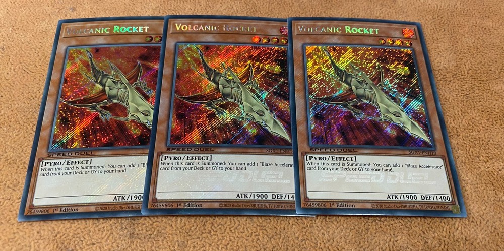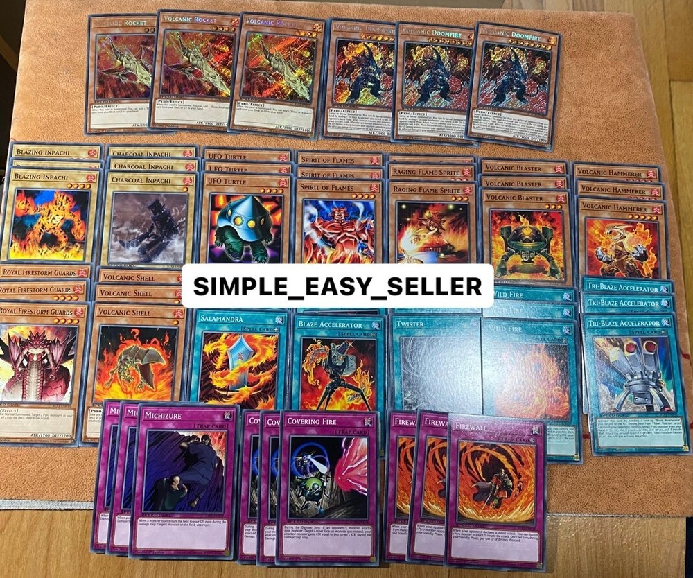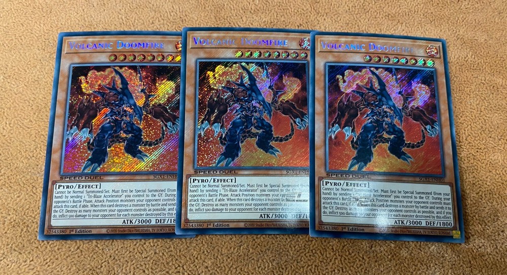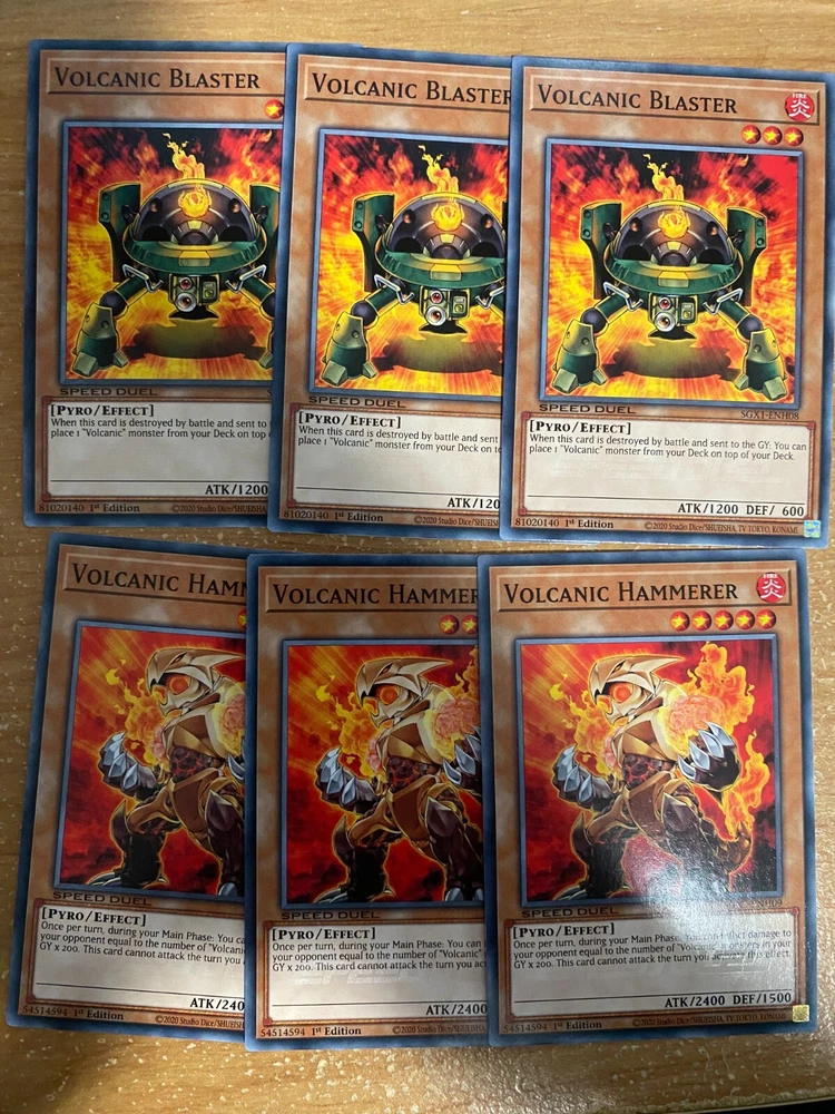 🔥 SECRET RARE VOLCANIC DECK CORE ~ 57 CARDS ~ SGX1 SPEED DUEL GX BOX YUGIOH NEAR MINT 🔥 SGX1-ENH01 " Volcanic Doomfire " SECRET RARE Effect Monster Speed Duel debut 3 SGX1-ENH02 " Blazing Inpachi " Common Normal Monster Speed Duel debut 3 SGX1-ENH03 " Charcoal Inpachi " Common Normal Monster Speed Duel debut 3 SGX1-ENH04 " UFO Turtle " Common Effect Monster Speed Duel debut 3 SGX1-ENH05 " Spirit of Flames " Common Effect Monster Speed Duel debut 3 SGX1-ENH06 " Raging Flame Sprite " Common Effect Monster Speed Duel debut 3 SGX1-ENH07 " Volcanic Shell " Common Effect Monster Speed Duel debut 3 SGX1-ENH08 " Volcanic Blaster " Common Effect Monster Speed Duel debut 3 SGX1-ENH09 " Volcanic Hammerer " Common Effect Monster Speed Duel debut 3 SGX1-ENH10 " Volcanic Rocket " SECRET RARE Effect Monster Speed Duel debut 3 SGX1-ENH11 " Royal Firestorm Guards " Common Effect Monster Speed Duel debut 3 SGX1-ENH12 " Salamandra " Common Equip Spell Speed Duel debut 3 SGX1-ENH13 " Twister " Common Quick-Play Spell Reprint 3 SGX1-ENH14 " Blaze Accelerator " Common Continuous Spell Speed Duel debut 3 SGX1-ENH15 " Tri-Blaze Accelerator " Common Continuous Spell Speed Duel debut 3 SGX1-ENH16 " Wild Fire " Common Quick-Play Spell Speed Duel debut 3 SGX1-ENH17 " Michizure " Common Normal Trap Reprint 3 SGX1-ENH18 " Covering Fire " Common Normal Trap Speed Duel debut 3 SGX1-ENH19 " Firewall " Common Continuous Trap Speed Duel debut 3