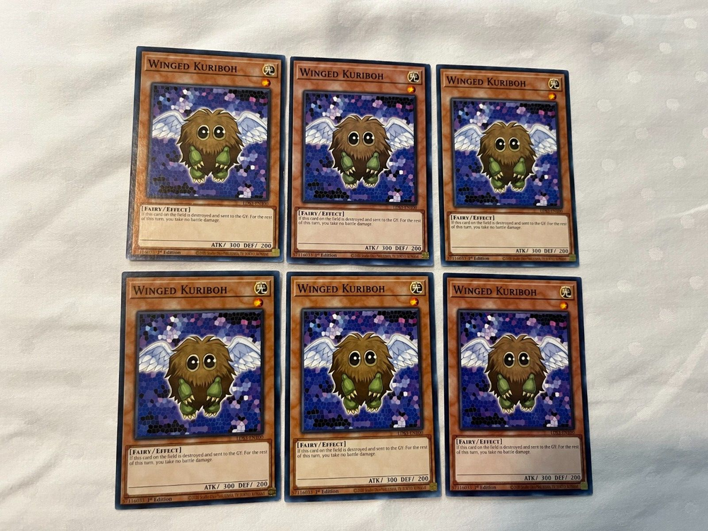 WINGED KURIBOH x6 DOUBLE PLAYSET YUGIOH GX JADEN YUKI YUGI MUTO 1 STAR! AS SHOWN IN PICTURES: ALL CARDS ARE IN NEAR MINT OR VERY LIGHTLY PLAYED CONDITION! GREAT CONDITION! WINGED KURIBOH x6 (COMMON) ALL orders from my store will be shipped in a small envelope WITH tracking shipped with an eBay standard envelope tracking label. See shipping price! Handling time is 2 days, and then the item will be shipped immediately!