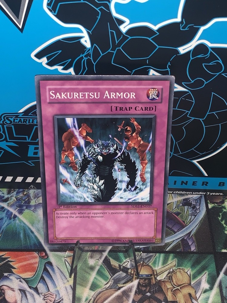 This Sakuretsu Armor card is a must-have for Yu-Gi-Oh! collectors—especially as a 1st Edition from the 5D's Starter Deck. The condition is great, and it arrived safely. Perfect for dueling or displaying! Highly recommend this seller for vintage cards.
