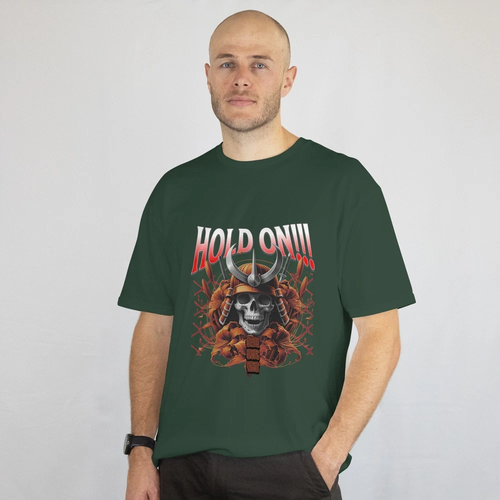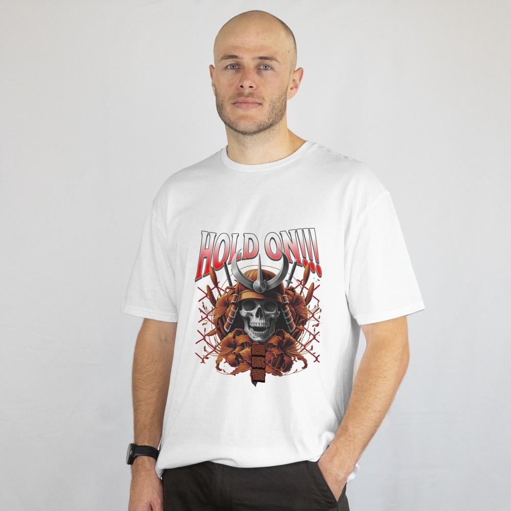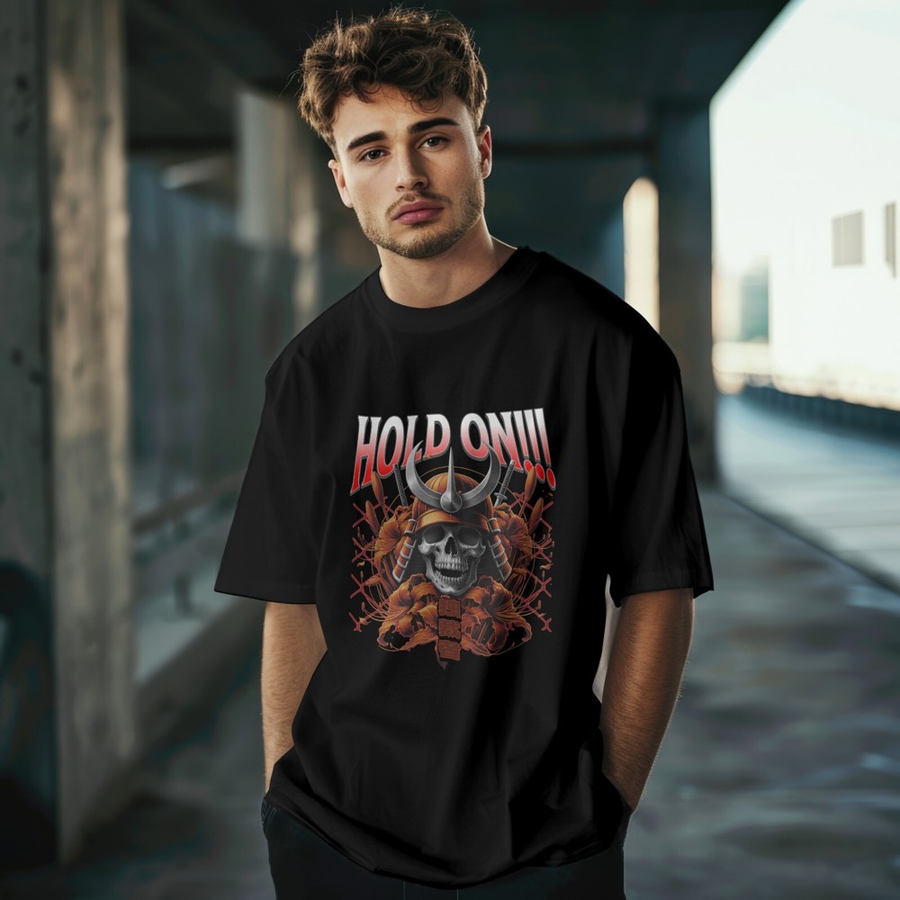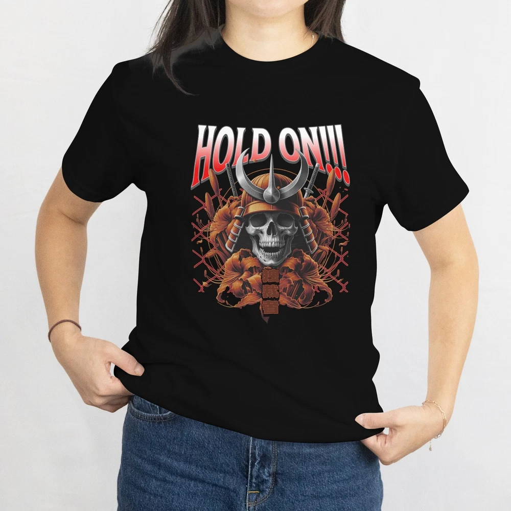 Brace yourself for the ultimate clash of power and art. This “Hold On!!!” samurai skull tee merges feudal-era warrior aesthetics with modern graphic intensity. Featuring a fierce skeleton warrior in full armor, crossed katanas, blooming red peonies, and bold Japanese kanji, this shirt captures the raw spirit of resilience, honor, and style. Whether you’re an anime fan, martial arts enthusiast, or streetwear collector — this design demands attention. Great for cosplay events, edgy fashion lovers, or as a gift for that one friend who lives by the code of the sword. 👕 Product Details: Premium 100% Cotton – Soft, durable, and breathable Vibrant DTF print – Fade-resistant and long-lasting Classic Unisex Fit – True to size Machine washable – Turn inside out for best results 🔥 Why You'll Love It: Bold streetwear design with cultural fusion Unique samurai & skull aesthetic Conversation starter – guaranteed to get compliments Perfect for anime expos, concerts, or everyday wear WE HAVE SIZES FROM L TO XXXL READY TO BE SHIPPED ALL BLACK AVAILBE IN STORE 🎁 Perfect Gift For: Anime lovers Samurai & Japanese culture enthusiasts Goth or metal fans Urban fashion fans Birthdays, cosplay, or holiday gifting Good things about the T-shirt The T-shirt is well prepared packed and ready to put on with that feeling of outside doors FUNNY VIBES.