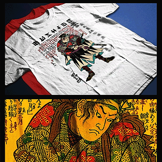 Samurai T-Shirt featuring deadly warrior with sword and Bushido Code in Japanese kimono style