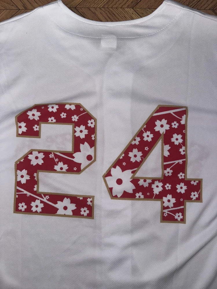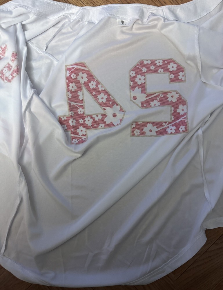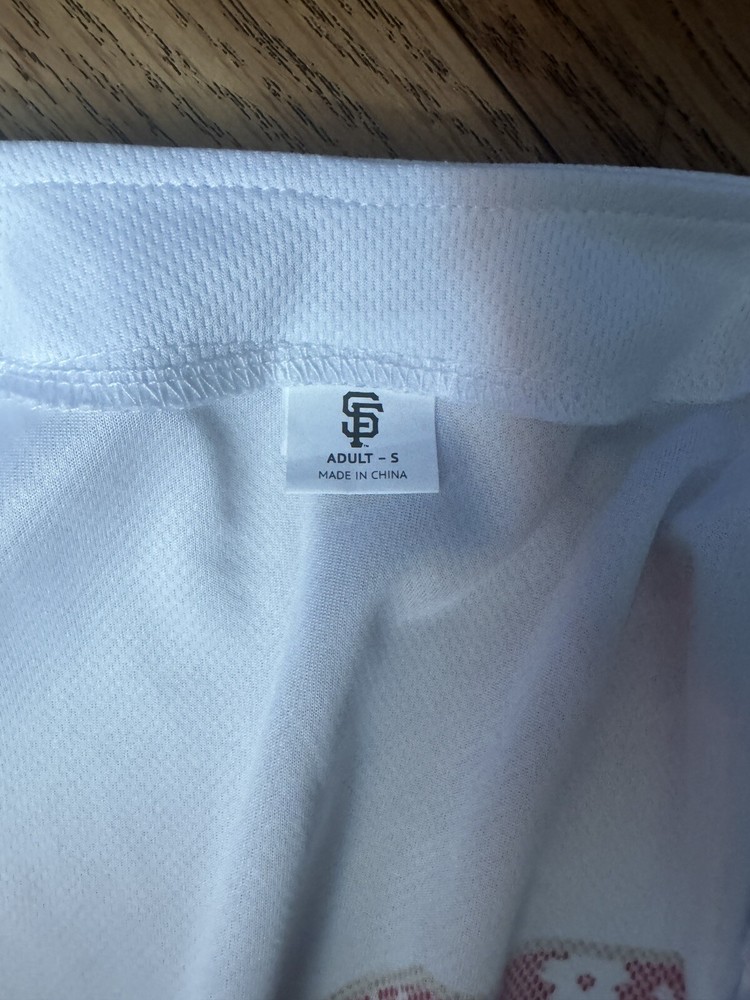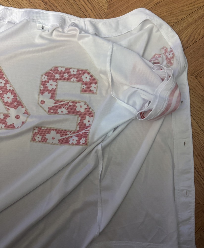 The product is a San Francisco Giants jersey featuring Japanese heritage and a Godzilla design, inspired by Masanori Murakami. Made in Japan, the white jersey in size S is a unique and collectible item for fans of the Major League Baseball team. It showcases a blend of Japanese culture and baseball, making it a special piece for supporters of the San Francisco Giants and fans of unique sports memorabilia.