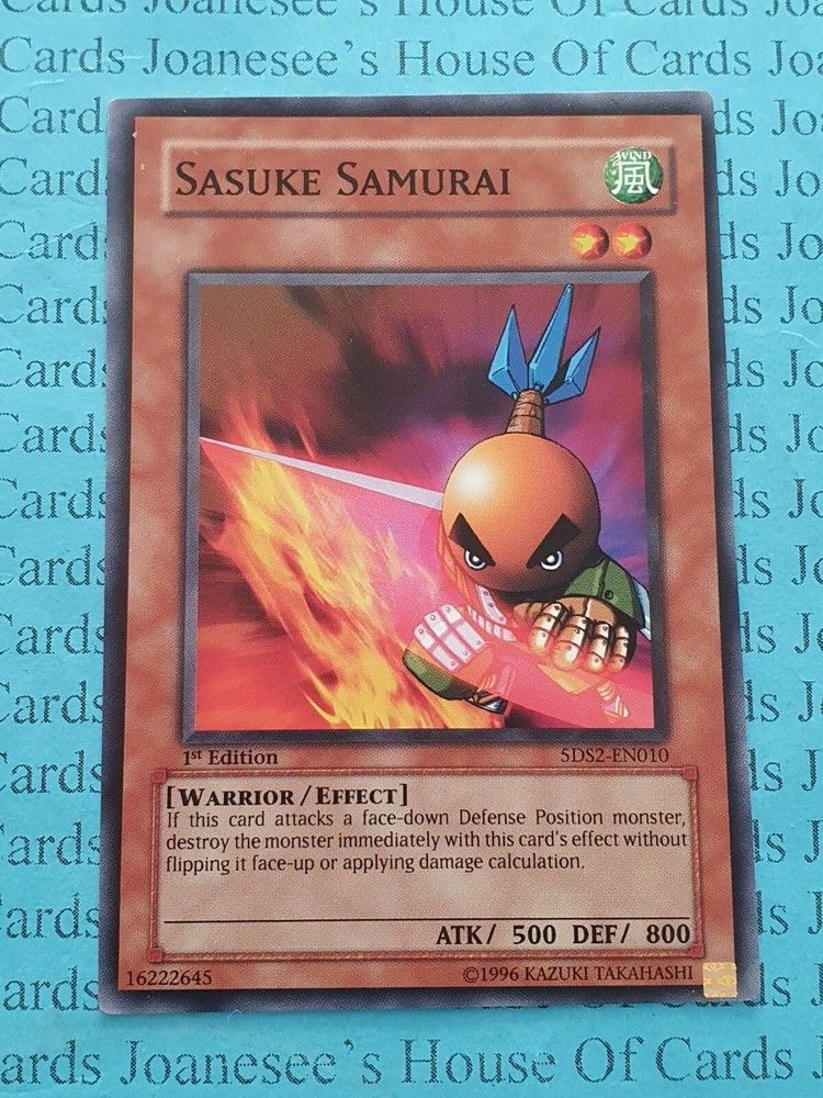 This is a Common Wind Warrior Sasuke Samurai 2 Stars ATK/500 DEF/800 Card text: At the start of the Damage Step, if this card attacks a face-down Defense Position monster: Destroy that face-down monster. 5DS2 -EN010 1st Edition English Mint/NMint Condition Totally Original Konami (or your money back!) I will deliver in safe packaging to keep it in perfect condition. Ideal for players and collectors alike. Check out my other items! I will combine postage costs for multiple purchases. Sign up for my email newsletters by adding my eBay Shop to your favourites
