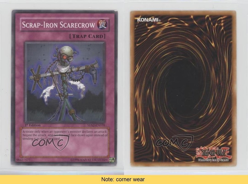 This 1st Edition Scrap-Iron Scarecrow is a solid addition to any Yu-Gi-Oh! collection! The card works great in trap-heavy decks, offering a reusable way to block attacks. While it has some corner wear, it’s still playable and looks good in a sleeve. Love the nostalgic feel of the 5D's era—definitely a must-have for fans of classic strategies. COMC is always reliable, and shipping was fast! Highly recommend for both collectors and duelists.