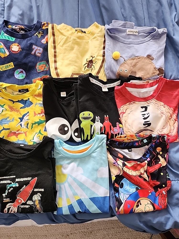 Set Of 10 Boys T Shirts 4T/5T Size 110 Nike Sea Creature Angler Fish Gozilla...