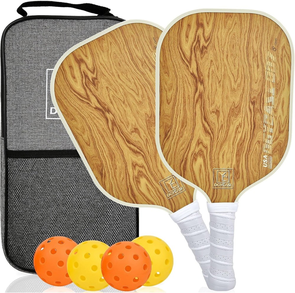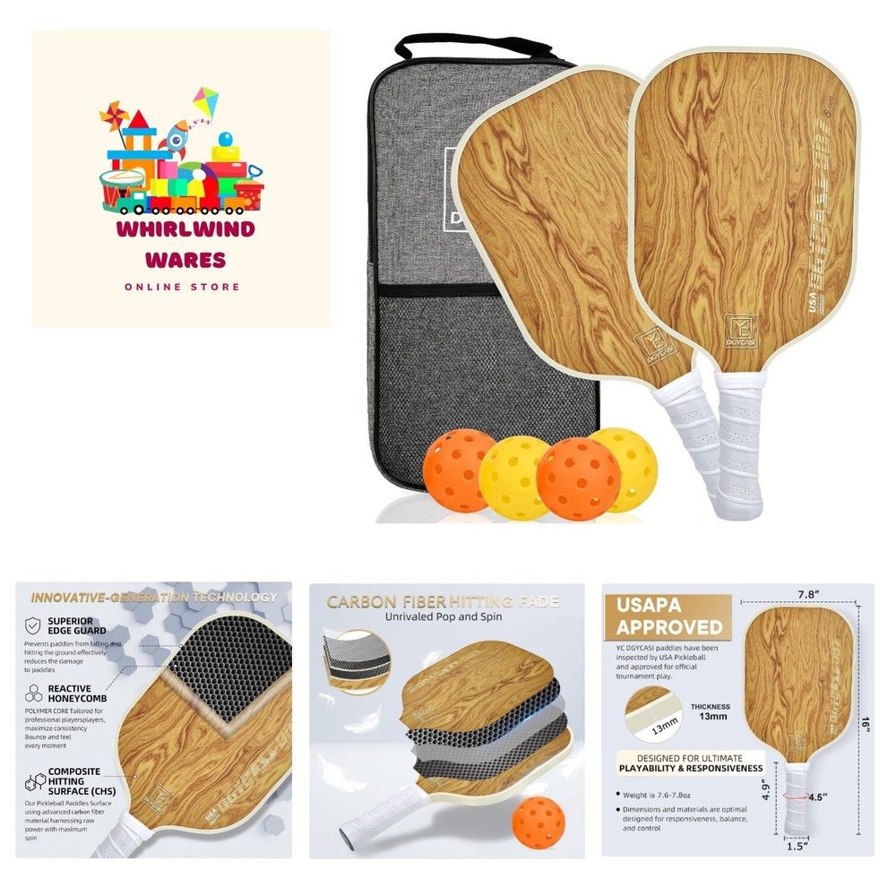 Set of 2, 2024 USAPA Approved, Carbon Fiber Surface CHS, Polypropylene Honeycomb Core, Anti-Slip Sweat-Absorbing Grip, 4 Pickleball, Portable Carry Bag 【THICKER 13MM CORE】 Reliable and proven technology paired with the 13 mm polypropylene honeycomb core gives you a smoother feel. The 26% thicker core absorbs the vibration from each hit and yields unwavering speed, specially tuned for the high-level player to maximize the consistency of the bounce and feel necessary for every shot, with reduced vibration 【CARBON FIBER MATERIALS】Our paddles are built with a honeycomb polymer core and are optimally balanced to be lightweight and durable. Each paddle weighs - oz. The soft, comfortable grip along with a light carbon Fiber surface provides a nice bounce and reduces ball deflection, which improves pitching performance and strikes the perfect balance between great gameplay, controls 【FULL CONTROL COMFORTABLE GRIP】 The grip is designed with soft material and sweat-wicking ventilation holes, anti-slip, abrasion-resistant, and durable one-piece grip you will never get fatigued after longtime play, meanwhile minimizing slippage to give you the perfect wrist movement and flexible rotation 【LIGHTWEIGHT WITH EDGE GUARD PROTECTION】Less stress on your elbow/shoulder and provide better maneuverability. The overlapping edge guard maintains the integrity of the paddle and provides a covering to the interior, avoiding the risk of delaminating. It can withstand multiple strikes from the ball 【HELP YOU MANEUVER THE GAME EASILY】 Our pickleball racquets are USAPA approved for international championship pickleball competitions. If you're enjoying the sport and want to take your game to the next level by competing in tournaments, pickleball paddles have you covered 【AFTER-SALES SERVICE】 Every pickleball paddle is backed by superior quality and under strict quality inspection. Our aim is 100%, satisfied customers. Return it anytime and get a resolution when you are not happy with our pickleball paddle Product Series Swipe left and right to view more product information is dedicated to creating QUALITY