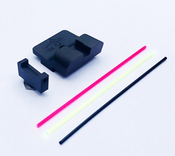 Newly Designed - Sevigny Target Sights for Glock models INCLUDES G-SHIM Part GS805 Front Sight: Serrated .117” wide x .225” tall Rear Sight: Plain .250” tall x .150” wide notch Includes: Black, Green and Red fiber optic rods Plain Rear/Fiber Optic .225” tall front AND a .015” G-Shim for a .240” face height. GS805 and G-Shim are sold separately. This combo is ideal because the G-Shim increases the front sight contact surface with the slide. This improves hold on the polymer slide. G44 tests were conducted with an experienced GSSF Master Class competitor’s G44 with a GS805 Target set and G-Shim. At 15 yards the point of aim and point of impact was at zero. *G-SHIM IS INCLUDED WITH THIS SET* IMPORTANT!!! Sights must be installed by a qualified gunsmith. This is especially important with the G44 due to the polymer dovetail. Improperly installed rear sights will result in a loose fit, and/or may shear polymer and/or will push the sight off axis. Another problem can happen from over-torquing the set screw. A lot of things can go wrong if you don’t have the knowledge, experience and skills to properly install your sights on ANY pistol. Instead of risking it, find an experienced source to perform the installation. Compatibility Guidelines : Part Number GS805 (Plain rear sight with .225” tall fiber optic front sight) - Glock GEN 1, GEN 2, GEN 3 model 17, 19, 20, 21, 22, 23, 26, 27, 29, 30, 31, 32, 33, 37, 38, 39 - Glock GEN 4, GEN 5 model 26, 27, 29, 30, 33, 44 and *Slimline 36, 42, 43, 48 - Point of Impact for .225” front sight height on GEN 1-3 longslide models and GEN 4, GEN5 model 17, 22, 31, 34 and 35 is approximately 2”-4” high. * Target rear sights will fit Slimline models but will appear slightly large. Outer width of rear sight remains inside of slide width. Standard rear sight notch width is .150″. This, in my experience, provides the best window for both speed and accuracy. Applications: Carry weapons, GSSF, Pro-Am, Steel Challenge and USPSA/IPSC pistols. Sold DIRECT from Sevigny Performance. Please message us with any questions!