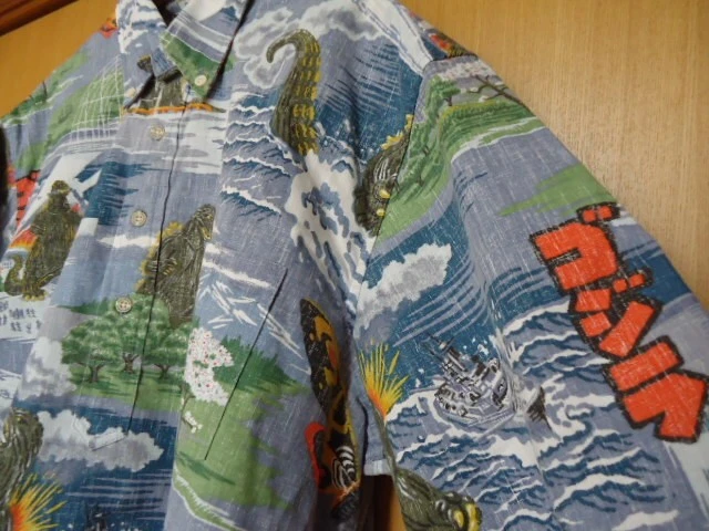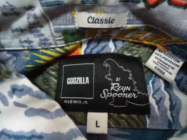 Warm greetings from Japan. Thank you very much for visiting our listing. L Limited edition Like new CLASSIC FIT. Made by Reyn Spooner. Pullover. Logo shell buttons. Classic fit. 55% cotton, 45% polyester blend. Colors are purple and blue, with Godzilla and Mothra landscapes. Dry-cleaned. Size is L, but please take the actual measurements into consideration. Shoulder width is about 50 cm ( 19.6 Inches ) , width (underarm) is about 59 cm ( 23.2 inches ) , length is about 76 cm ( 29.9 inches ). Please inspect pictures for condition reference. We update our inventory every 24 hours, However, some items may sell locally in between and we may need to cancel the order. Please confirm availability before buying. CAUTION: Import TAXES (VAT),and duties are responsibility of buyers.