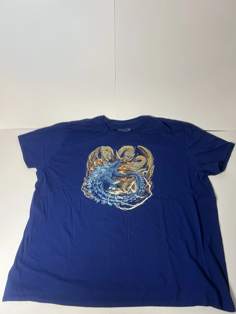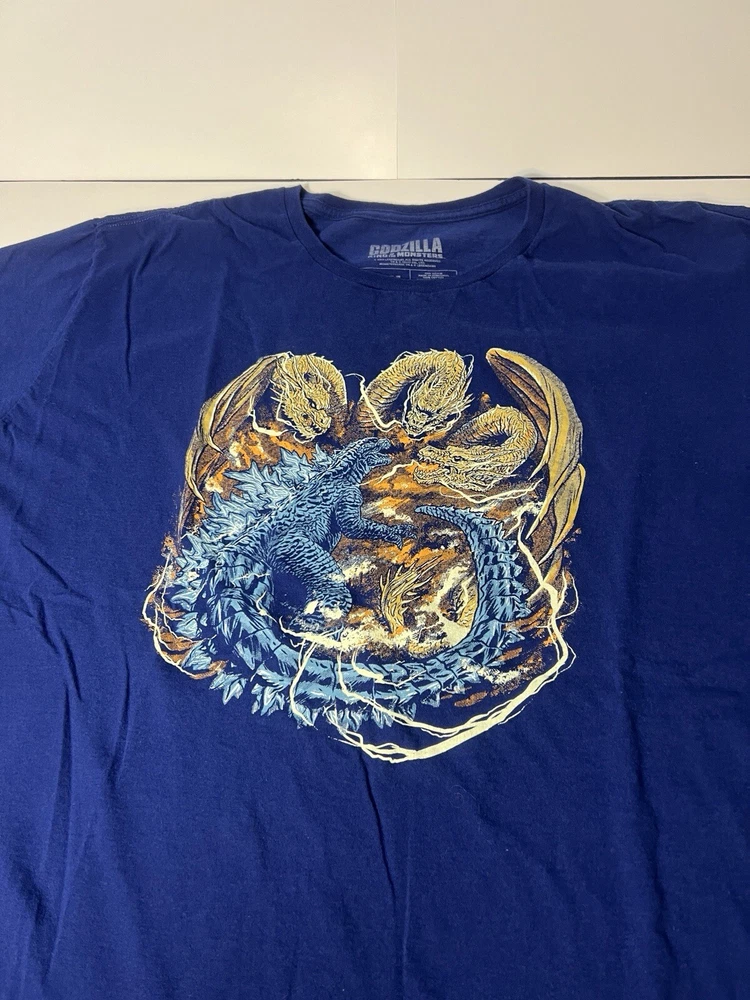 This blue Loot Crate t-shirt features the iconic Godzilla, King of the Monsters, in size 3XL. The shirt is perfect for men who love the classic monster movie character and want to show off their love for him. The shirt is made of high-quality materials and is designed to be comfortable and durable. The blue color of the shirt is perfect for any casual occasion and will make you stand out from the crowd. Get your hands on this limited edition t-shirt today!