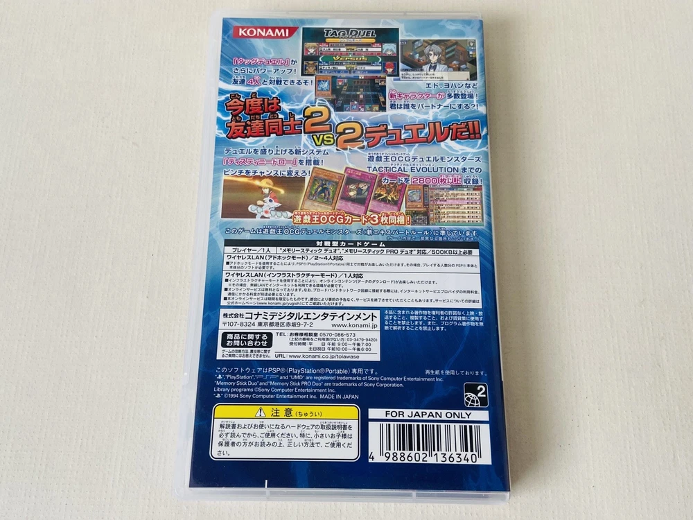 Sony Playstation Portable PSP Yu-Gi-Oh Duel Monsters GX Tag Force 2 Japanese JP [ Products ] Platform: Sony Playstation Portable Product Name: Yu-Gi-Oh Duel Monsters GX Tag Force 2 Condition: Used. 100% Authentic.The language will be Japanese. Region code is Japan. It will not work without a Japanese-made unit. The case, UMD and manual have minor scratches, dents, scuffs and stains, but no tears or cracks. We have confirmed that the UMDs started up without any problems when we checked the startup. Please check the photos. Please contact us if you would like to ship together or if you have any questions. [ About each policy ] Please be sure to carefully review each policy (shipping, return, etc.) as they are stated on our store page before making a purchase. Thank you for your understanding and cooperation in this matter.