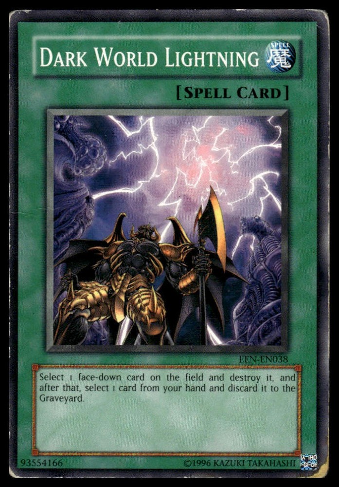 This is a nice example of a Speed Duel GX: Duelists of Shadows #SGX3-ENA16 Dark World Lightning Other important information about this card: In Dark World Lightning played for the . Please check out our other listings for more great cards.