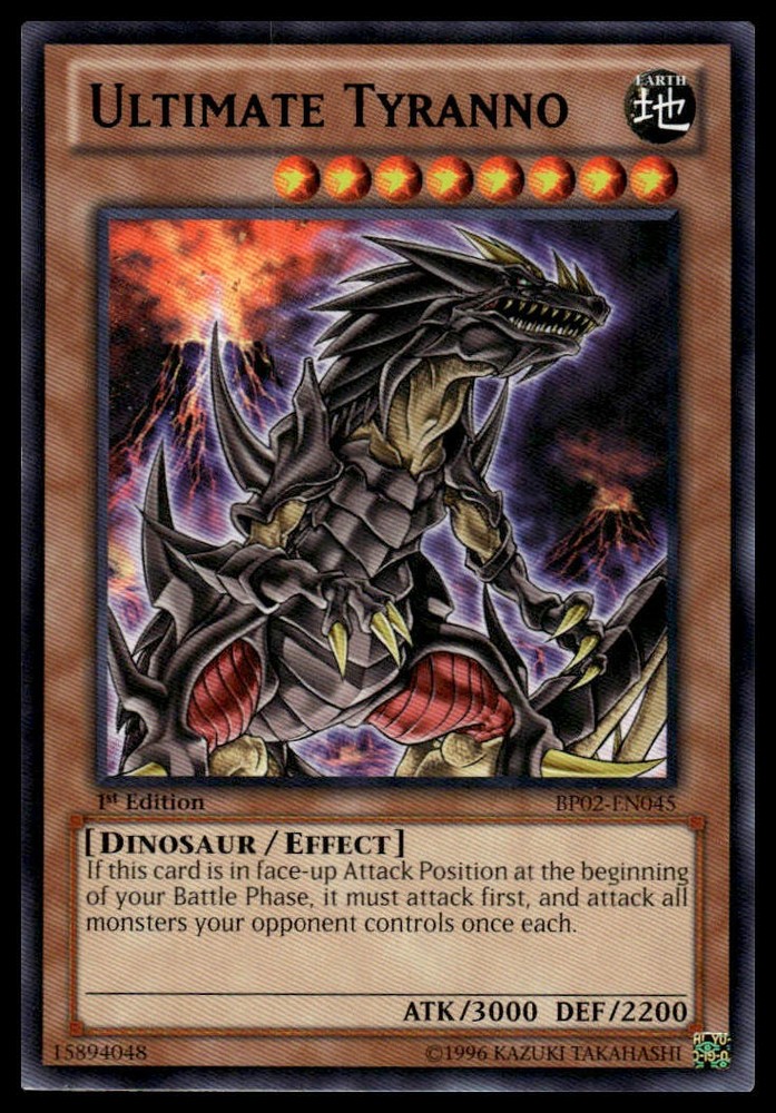 This is a nice example of a Speed Duel GX: Midterm Destruction #SGX4-ENC01 Ultimate Tyranno Other important information about this card: In Ultimate Tyranno played for the . Please check out our other listings for more great cards.