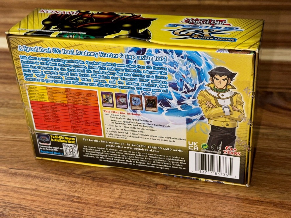 ⚡ Step into Duel Academy and rewrite history with the Yu-Gi-Oh! Speed Duel GX: Midterm Paradox Box! This official Konami release brings new characters, iconic cards, and skill-based strategies from the GX anime series into the Speed Duel format, making it a must-have for collectors, duelists, and fans of fast-paced action! 🃏 What’s Inside: ✔️ 4 Complete Speed Duel Decks – Inspired by fan-favorite GX characters like Jaden Yuki, Syrus Truesdale, and the Paradox Brothers. ✔️ Skill Cards Included – Activate special abilities unique to each duelist. ✔️ Exclusive Foil Cards – Featuring collectible holo versions and Secret Rares. ✔️ Official Konami Licensed Product – 100% authentic and tournament-legal. ✔️ Jump-In Ready – No deck-building needed—just open the box and start dueling! ✨ Perfect For: ✔️ Yu-Gi-Oh! GX anime fans ✔️ Beginners looking to learn Speed Duel format ✔️ Casual players and collectors ✔️ Gifting to duelists and TCG enthusiasts 🛒 Why Shop With Us? ✅ Fast & Secure Shipping ✅ 100% Genuine Konami Product ✅ Trusted Seller for Yu-Gi-Oh! Cards & Collectibles 👉 It’s time to duel—GX style! Grab your Speed Duel GX: Midterm Paradox Box now before it vanishes from the battlefield. Tap “Buy Now” and dive into the world of fast, skill-based dueling!