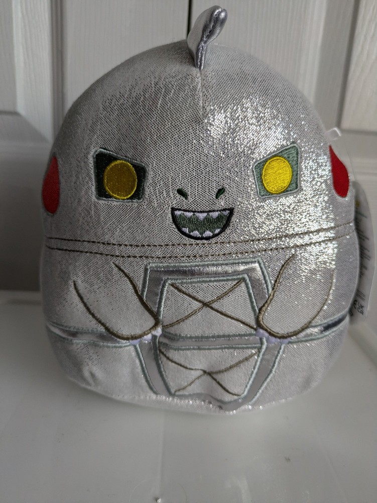 The Squishmallow Mechagodzilla Godzilla 8" plush toy by Kellytoy is a must-have for any Godzilla fan. This small silver stuffed animal is perfect for cuddling or displaying, with its detailed design and soft, squishy texture. Made in China and recommended for ages 3 and up, this adorable Mechagodzilla plush is part of the popular Godzilla character family, making it a great addition to any collection. Get yours today and bring a piece of the Godzilla universe into your home!