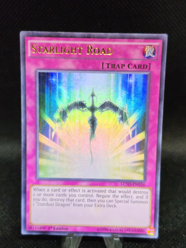 Starlight Road LC5D-EN056 Ultra Rare 1st Edition Light Play Spend $20+ on Yugioh singles, get 1 bonus ultra rare free Spend $30+ on Yugioh singles, get an additional secret rare free Spend $40+ on Yugioh singles, get an additional booster pack free All cards I sell are 100% genuine, if you have any questions or concerns message me and I will respond asap.