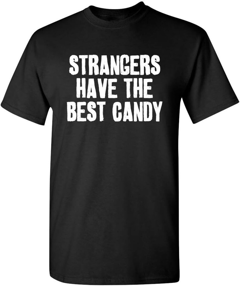 Strangers Have The Best Candy Offensive Sarcastic Humor Halloween Funny T Shirt FREE SHIPPING! FAST DELIVERY! DOMESTIC SHIPPING! Delivery from 3 to 7 business days! Features and further details Stay classy and unique with custom cotton and a pretty thick t-shirt. The print on demand t-shirt is designed with a crew neckline, short sleeves for better comfort, taped neck and shoulders, and double-needle sleeves for enhanced durability. It?s a good choice for both men and women. Material: 5.3 oz/yd², Dark Heather, Graphite Heather, Heather Navy, Heather Red, Tweed (50% cotton, 50% polyester); Sport Grey, Antique Irish Green, Antique Orange, Antique Sapphire (90% Cotton/10% polyester), Ash (99% Cotton/ 1% Polyester), All Others (100% cotton). Classic, unisex fit - Comfortable to wear and suitable for anyone to wear. Non-stitched, classic width, rib collar. Printing technique: Direct to Garment. Color: Ash, Black, Charcoal, Dark Chocolate, Dark Heather, Forest Green, Gold, Ice Grey, Irish Green, Kiwi, Light Blue, Light Pink, Maroon, Military Green, Navy, Orange, Purple, Red, Royal, Sand, Sport Grey, Tropical Blue, Turf Green, White, Antique Irish Green, Antique Orange, Antique Sapphire, Azalea, Cardinal Red, Carolina Blue, Cobalt, Coral Silk, Cornsilk, Daisy, Graphite Heather, Heather Navy, Heather Red, Heliconia, Lime, Natural, Sapphire, Tweed. Size: S, M, L, XL, 2XL, 3XL, 4XL, 5XL. Blank product: Gildan 5000 Shipping We shipping from US for all orders! We offer FREE shipping on all orders! We ship within Three business days of payment, usually sooner. We use a selection of shipping services such as UPS, FedEx, USPS etc. We only ship to the lower 48 states, no APO/FPO addresses or PO Boxes allowed. Local pickups and combined shipping options are not provided at this time. Feedback Customer satisfaction is very important to us. If you have any problem with your order, please contact us and we will do our best to make you satisfied. Contact Us If you have any queries, please contact us via ebay. We usually respond within 24 hours on weekdays. Please visit our store to check out other items for sale! Thank you for shopping at our store.