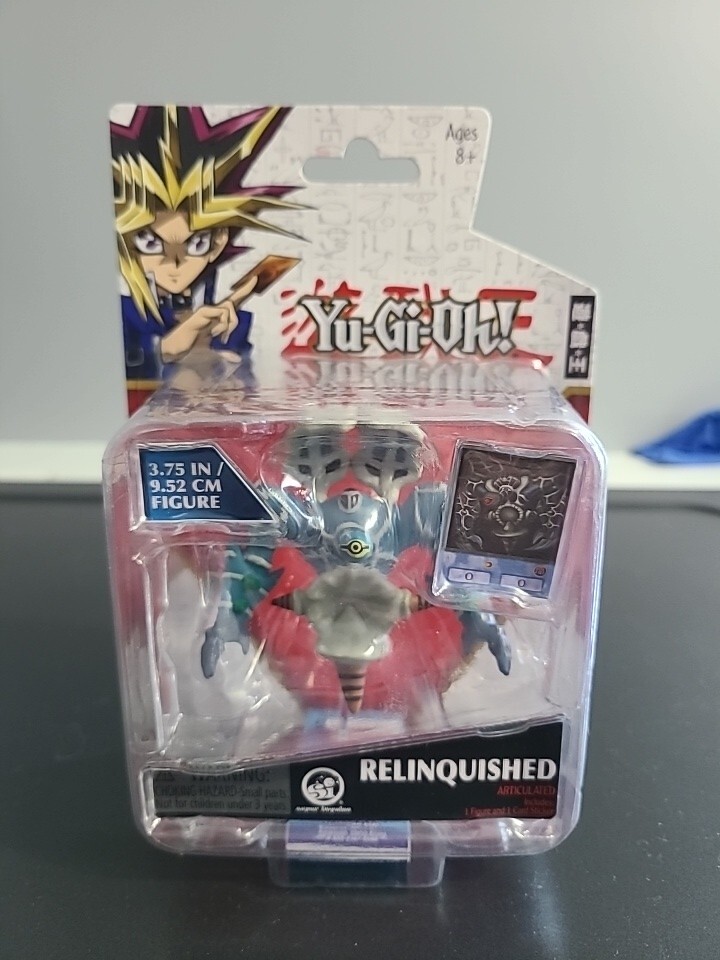 Enhance your collection of action figures with the Super Impulse YU-GI-OH Relinquished 3.75" Action Figure. This multicolored plastic figure features the character Relinquished from the popular TV show and franchise Yu-Gi-Oh!. The item comes with a card sticker and is produced by Studio Dice/Shueisha, TV Tokyo, and Konami. This unit is perfect for collectors and fans of anime and manga. It stands at 3.75 inches tall and was manufactured in China in 2020. The figure belongs to the Toys & Hobbies category and falls under the subcategory of Action Figures & Accessories. Get your hands on this unique item to add to your collection