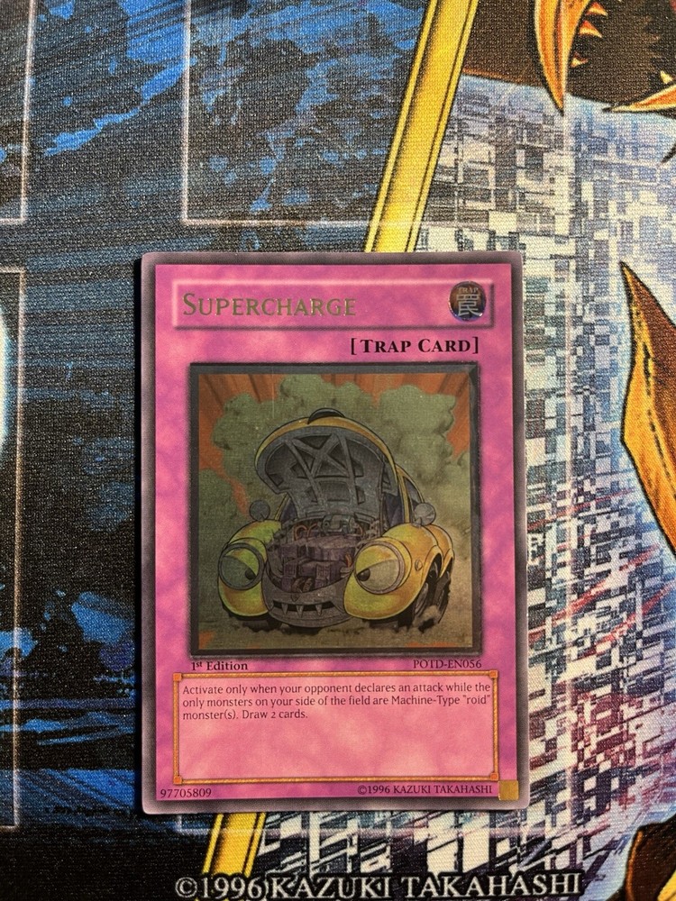 The "Supercharge" card is a vintage 1st Edition Ultimate Rare card from the Power of the Duelist set in the Yu-Gi-Oh! TCG. Manufactured by Konami in 2006 in the United States, this English-language card features an Angel creature type and falls under the Trap card category. With its unique Japanese card size and GX specialty, this collectible item is sought after by Yu-Gi-Oh! enthusiasts and collectors for its rarity and historical value.